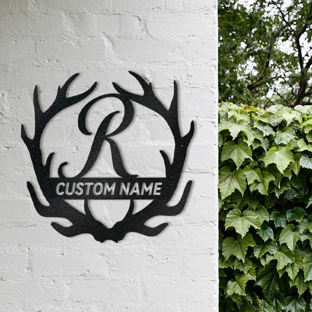 Antler Monogram Name Sign Custom Metal Wall Art