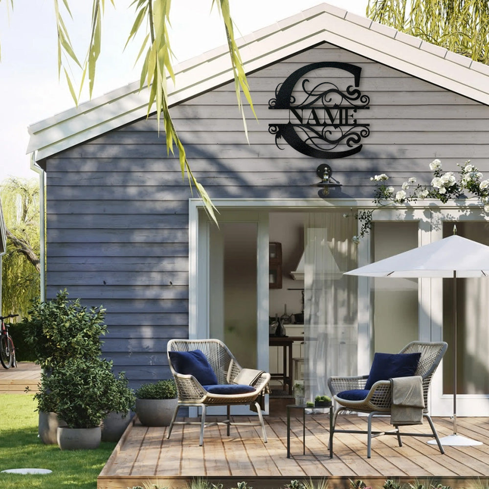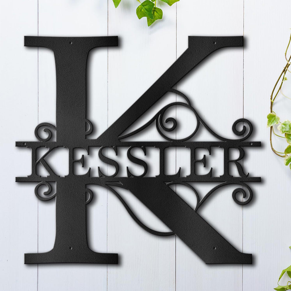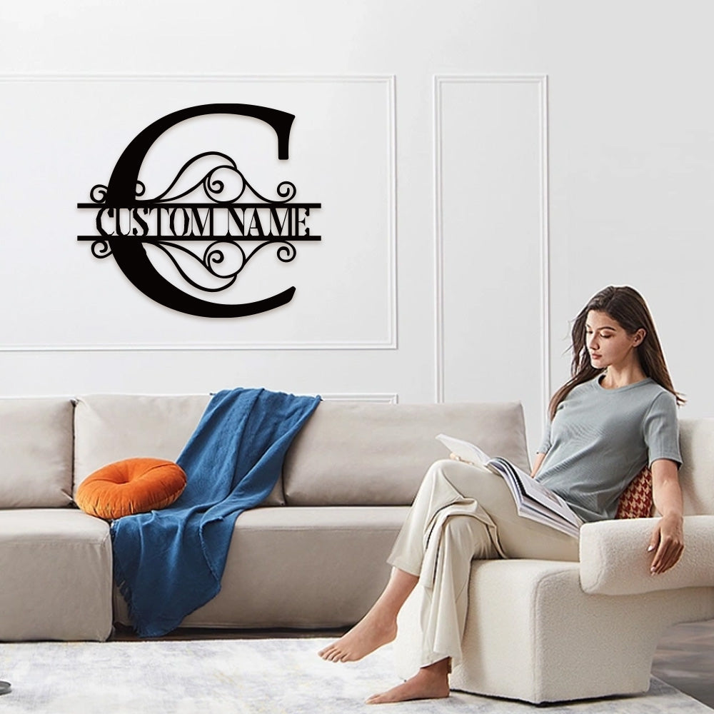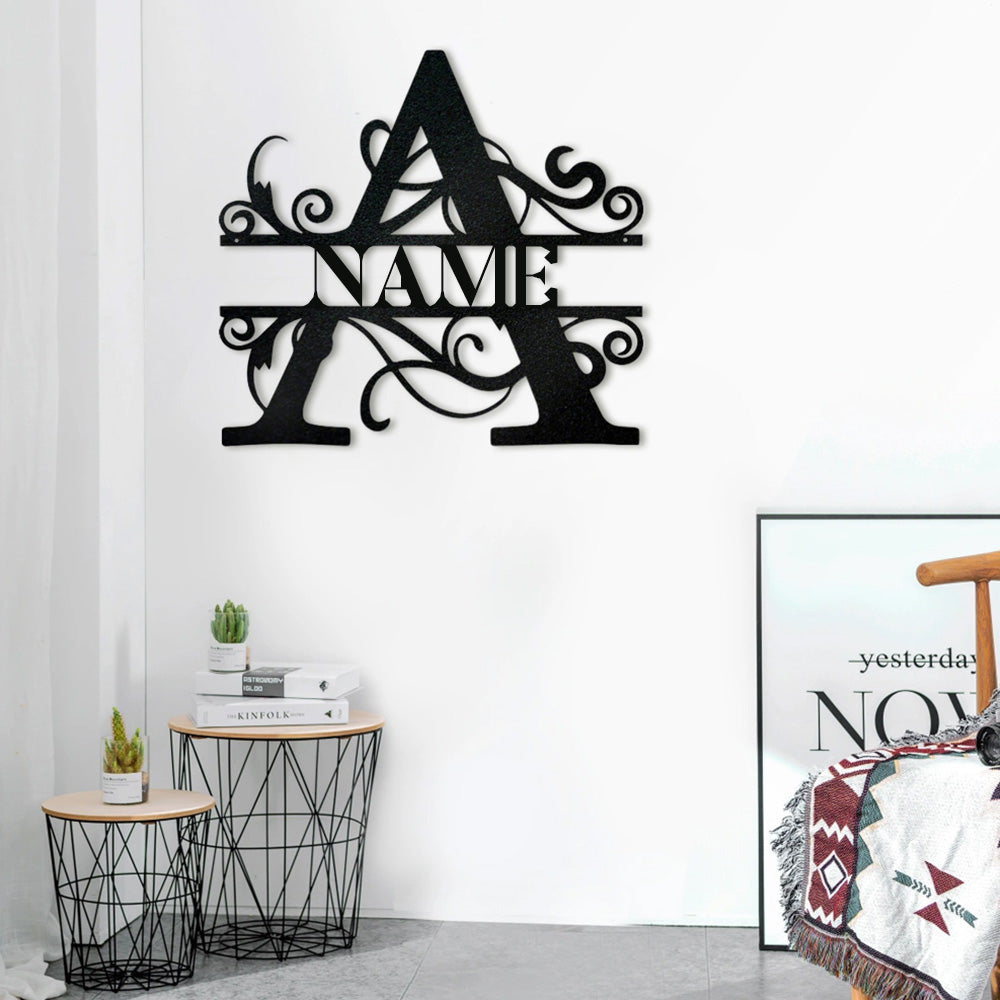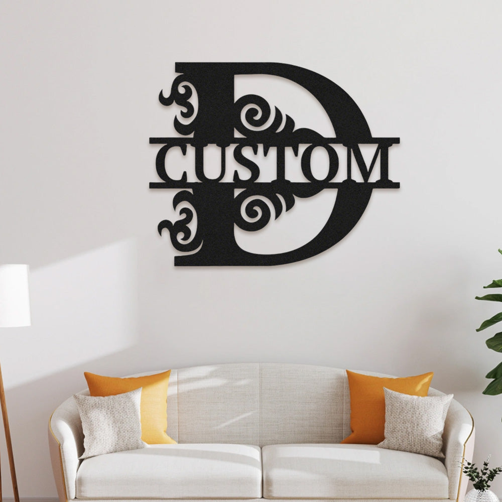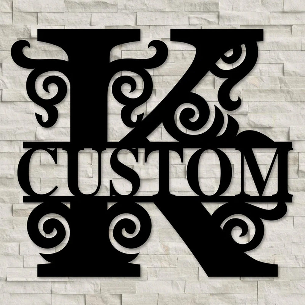 Swirl Split Letter Name Logo Custom Metal Wall Art