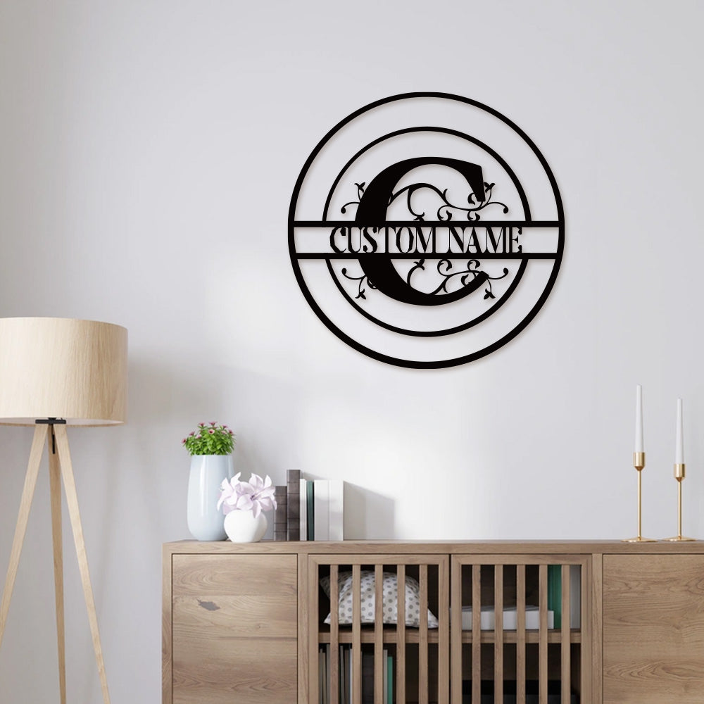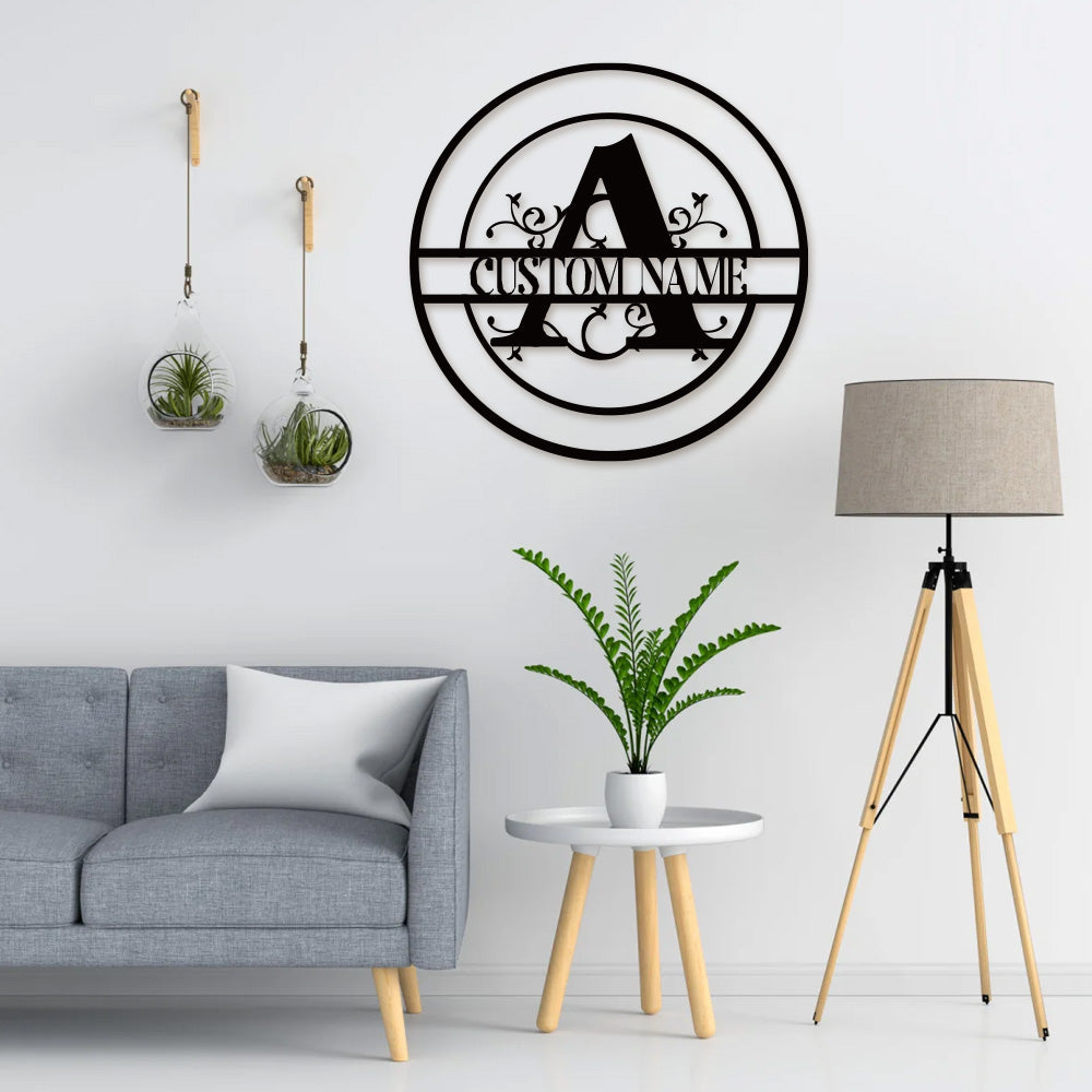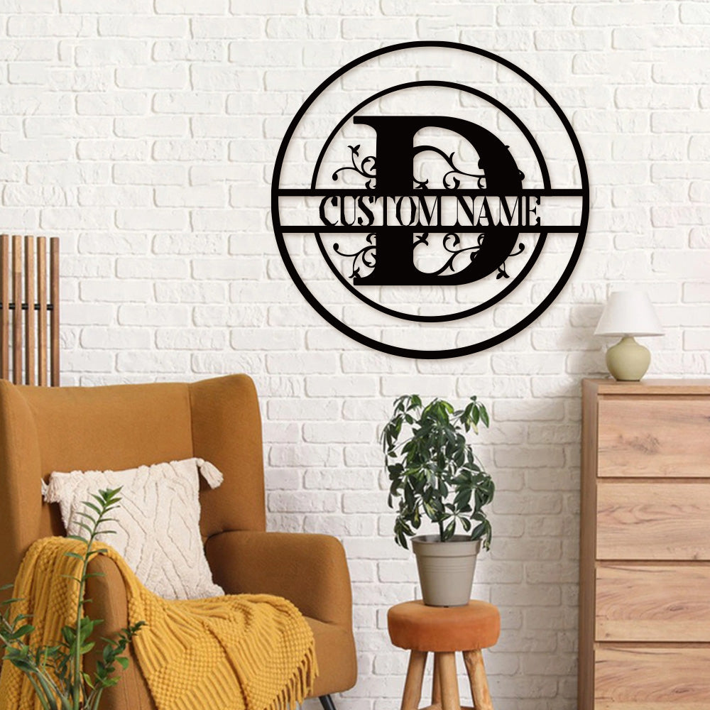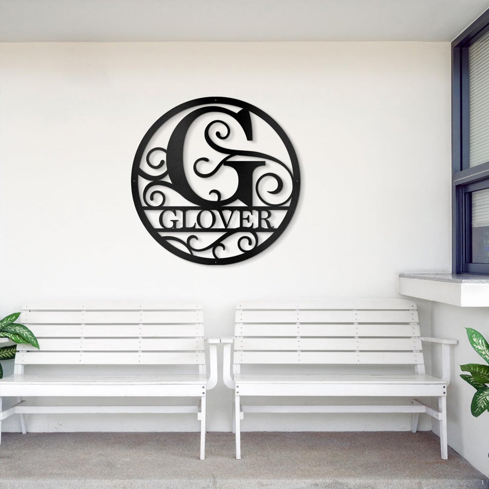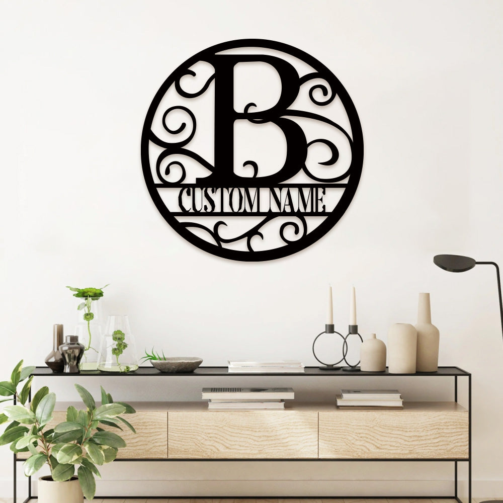 Round Split Letter Name Logo Custom Metal Wall Art
