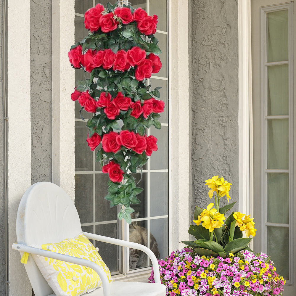 🌸High-quality Materials: The artificial hanging flowers for outdoors are made of high-quality poisonless and harmless PC plastic and silk fabric. You can put this artificial plants & flowers outdoors without any worries because they are double UV-resistant.