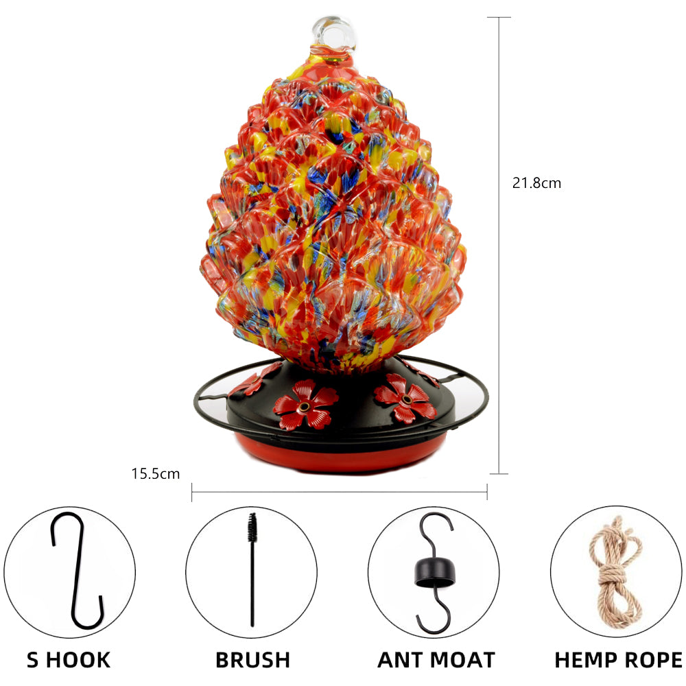 - 🪽 Glass Material, Large Capacity: Made of high-quality glass, it has a beautiful design and is more durable than plastic. It maintains its vibrant colors year-round, even in outdoor environments. The transparent glass allows you to see the liquid level at a glance, making it easier to know when to refill. It has a larger capacity, suitable for seasons when hummingbirds visit frequently.