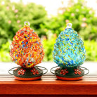 Hand Blown Glass Hummingbird Feeder with Perch