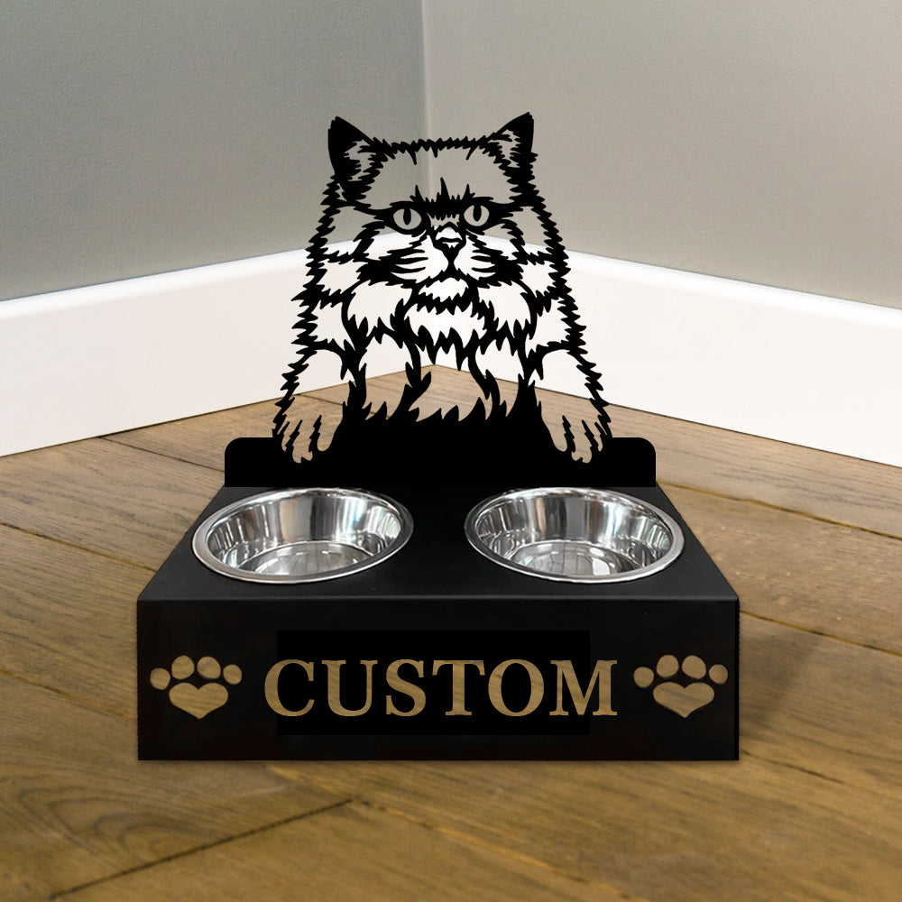 British Longhair Cat Personalized Name Pet Food Bowl Holder