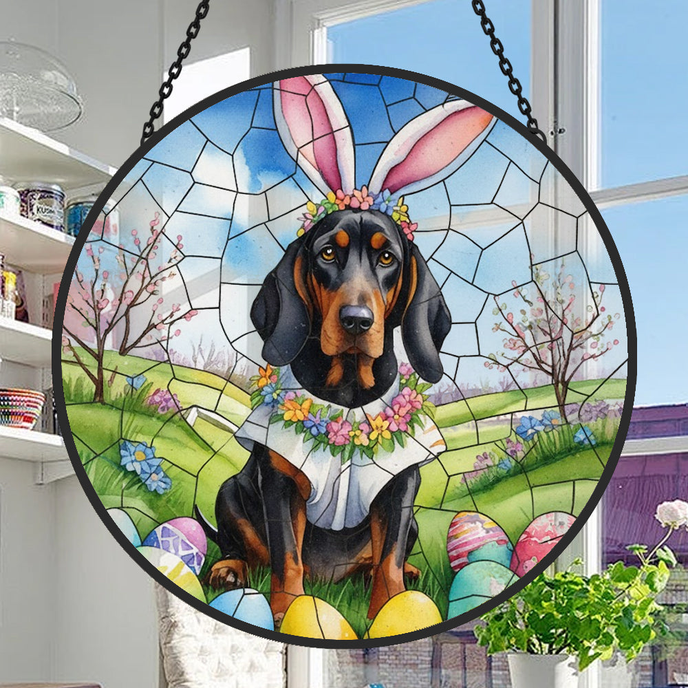 Black and Tan Coonhound Stained Glass Sun Catcher - Window Hanging Decoration