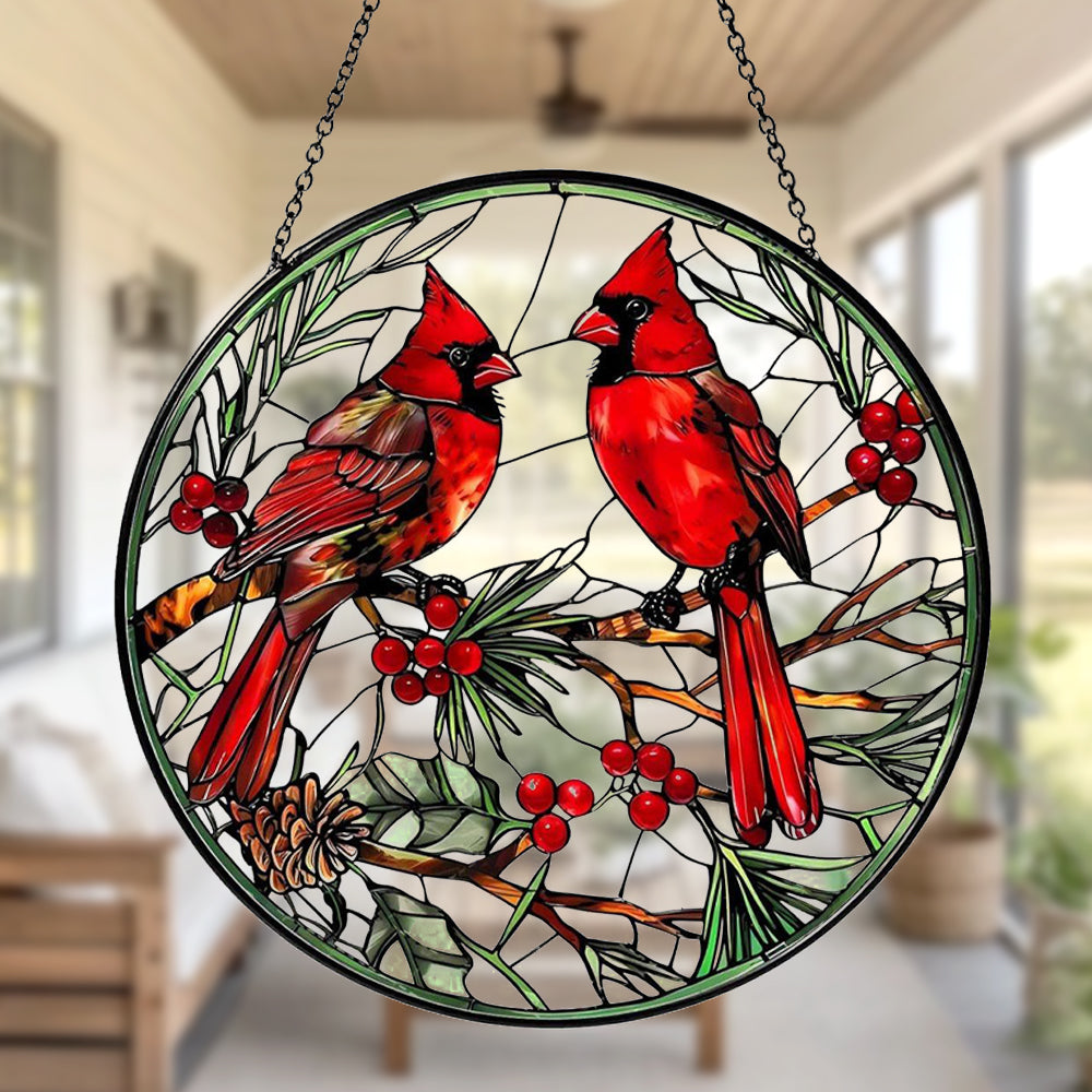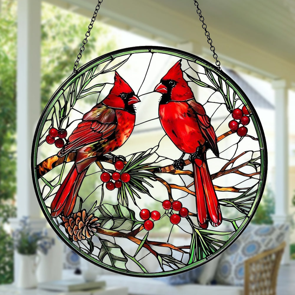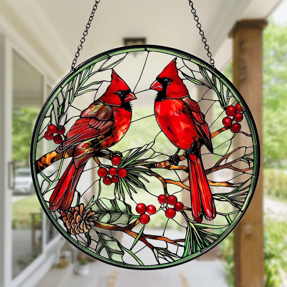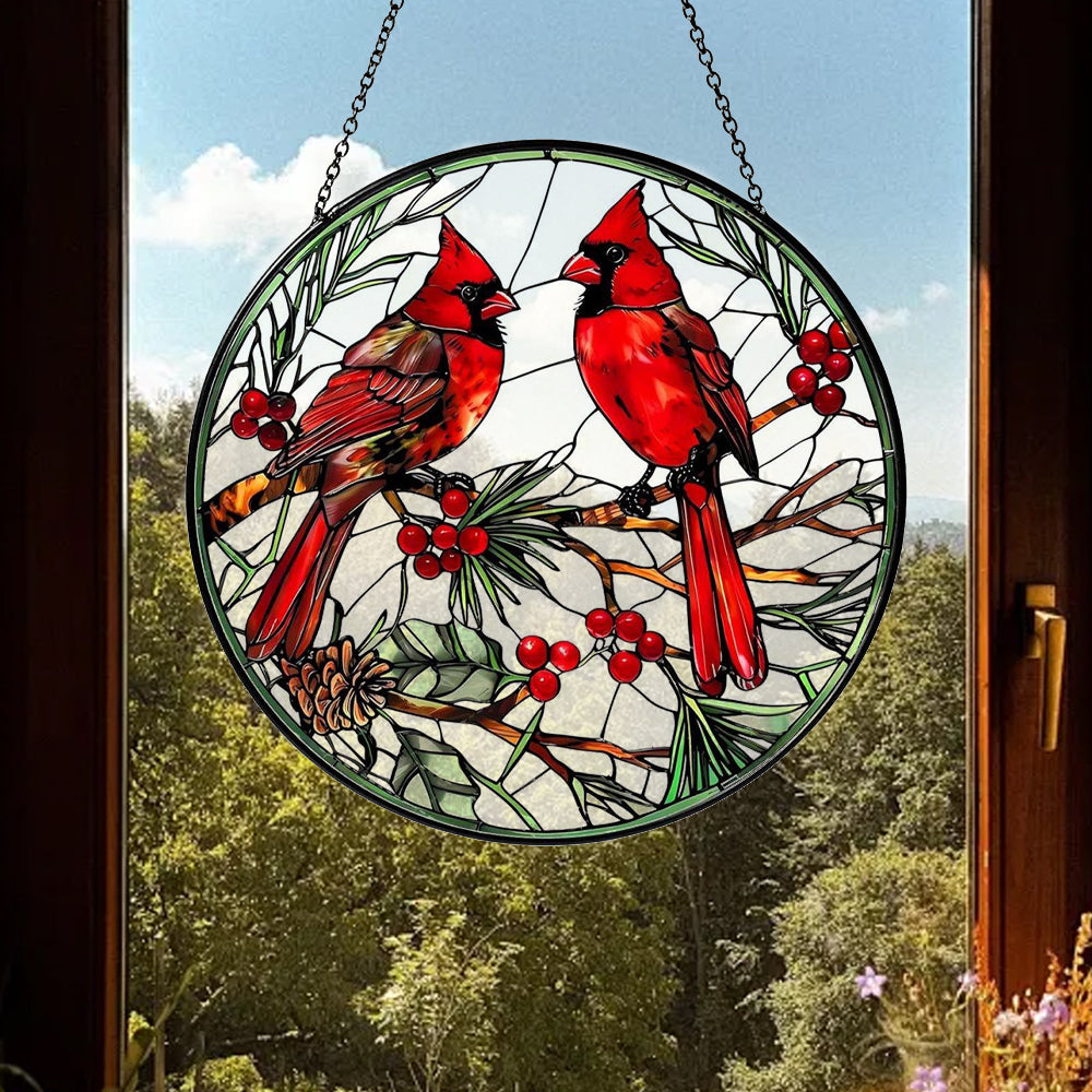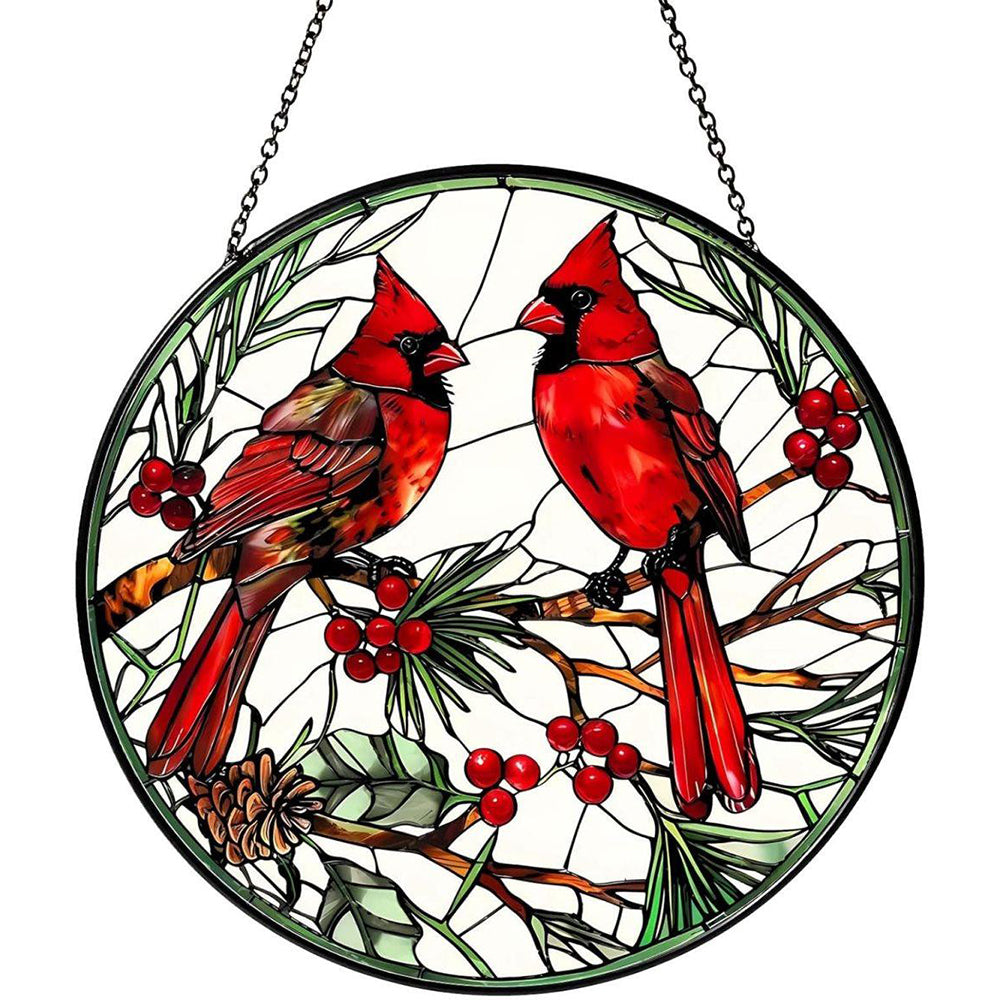 Cardinal Birds Sun Catcher Decoration Stained Glass Window Hanging