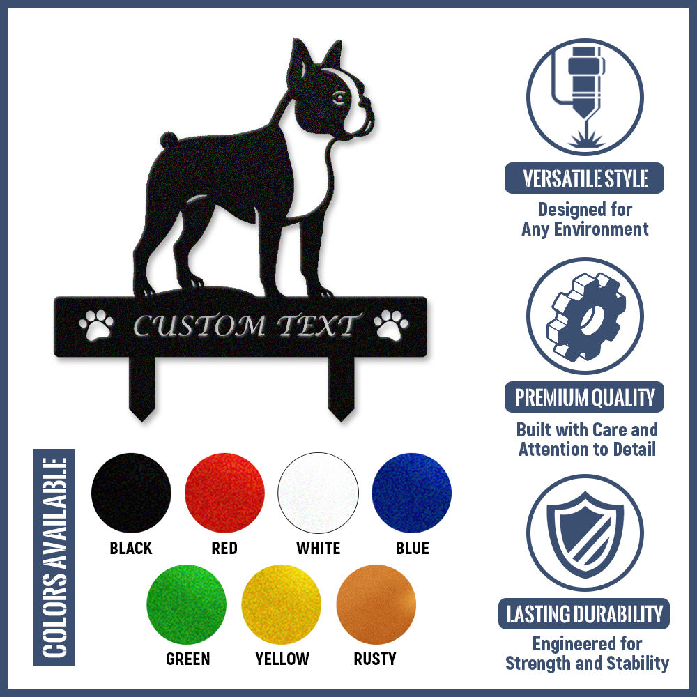 Boston Terrier Custom Dog Silhouette Metal Yard Stake