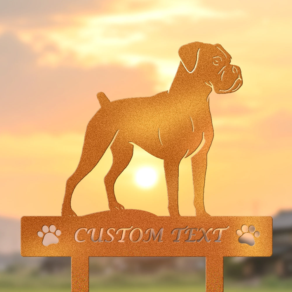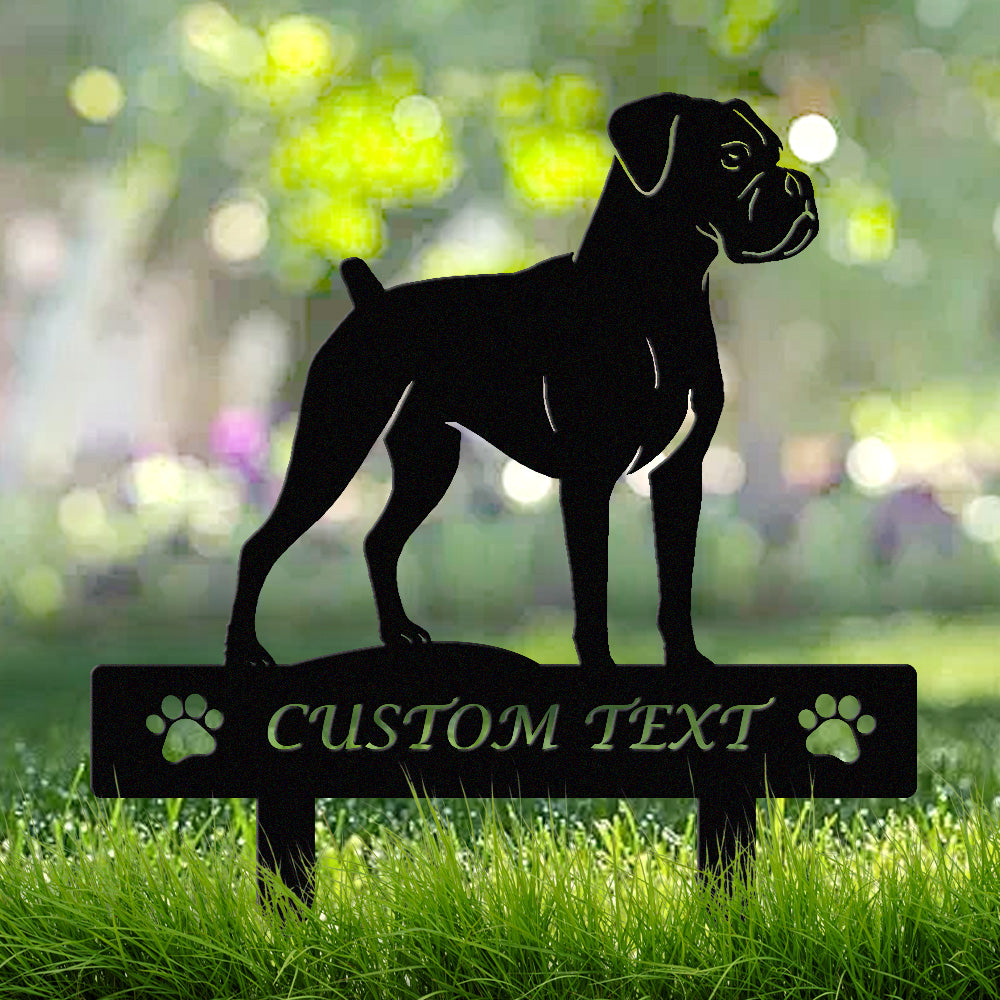Boxer Custom Dog Silhouette Metal Yard Stake
