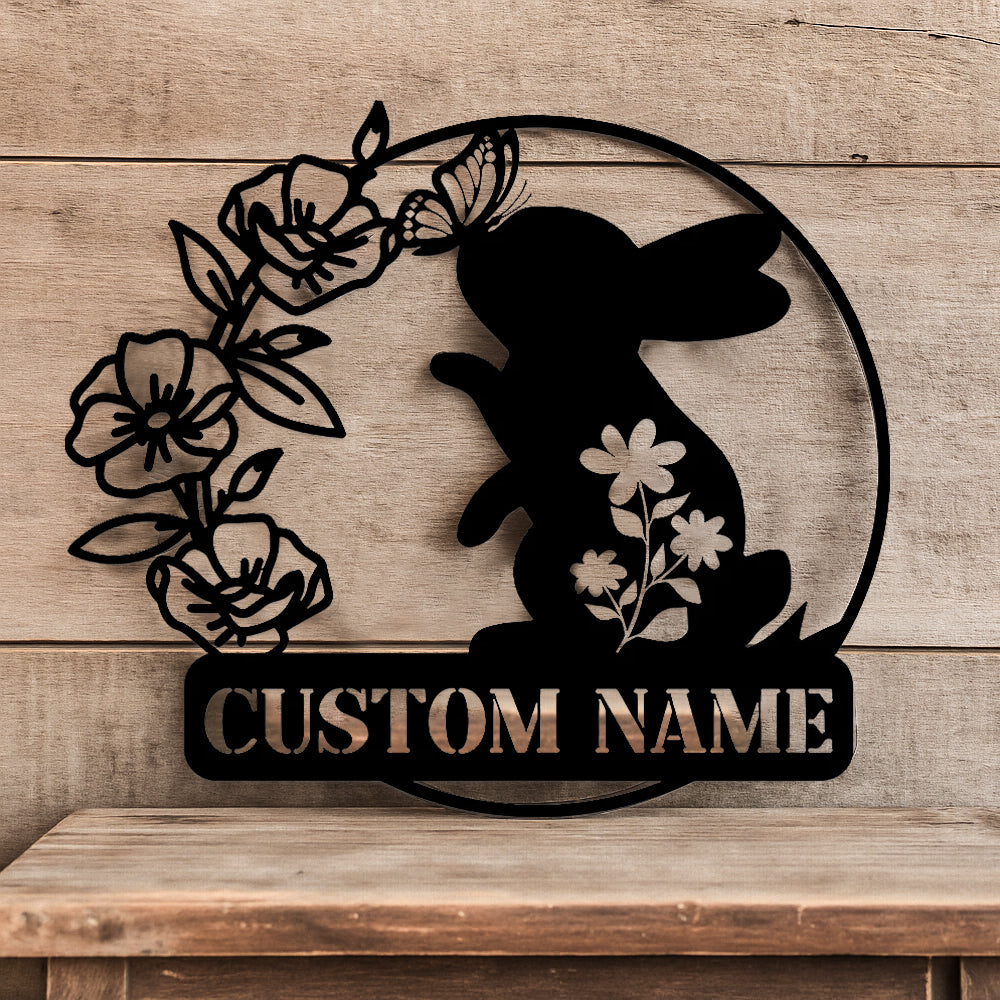 Custom Easter Rabbit Name Sign Metal Wall Art Decoration