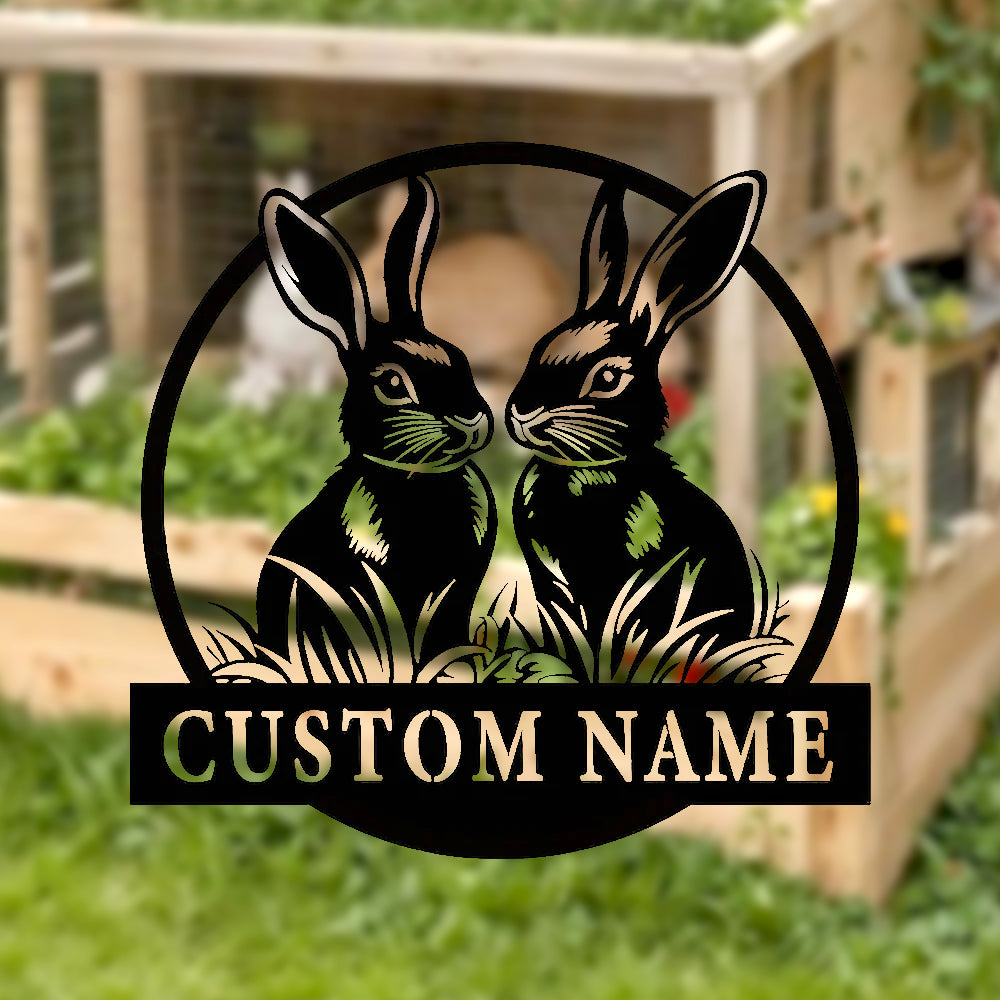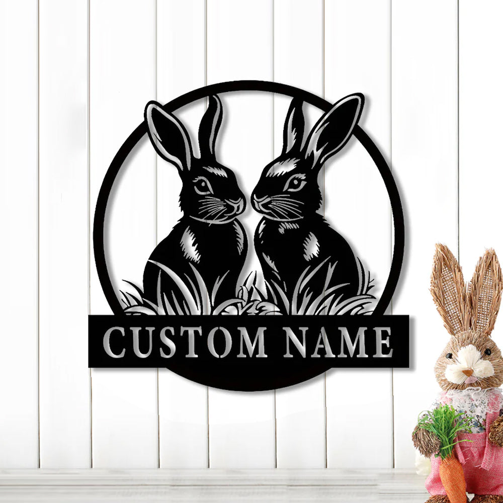 Custom Name Easter Two Rabbit Sign Metal Wall Art Decoration