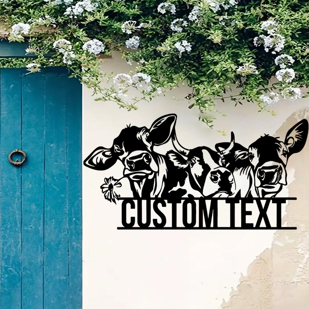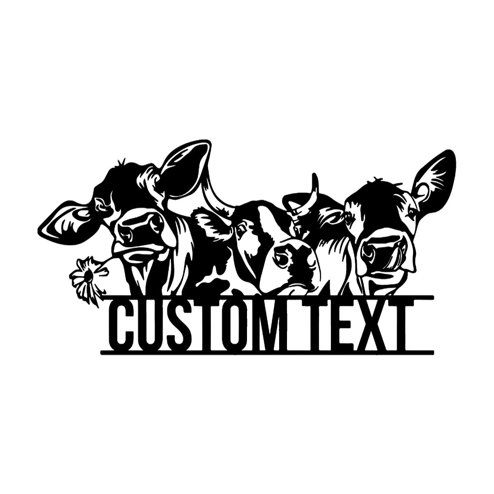 Custom Cow Heads & Daisy Sign Metal Wall Art Decoration