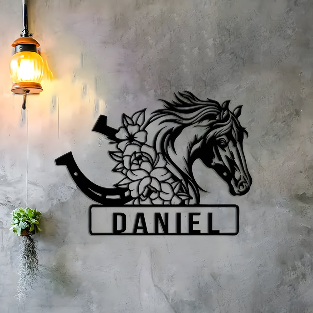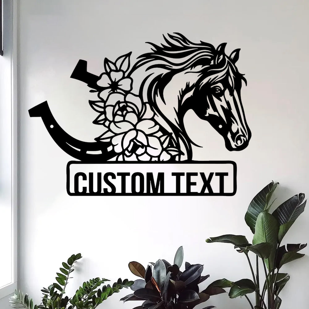 Custom Floral Horse Sign Metal Wall Art Decoration