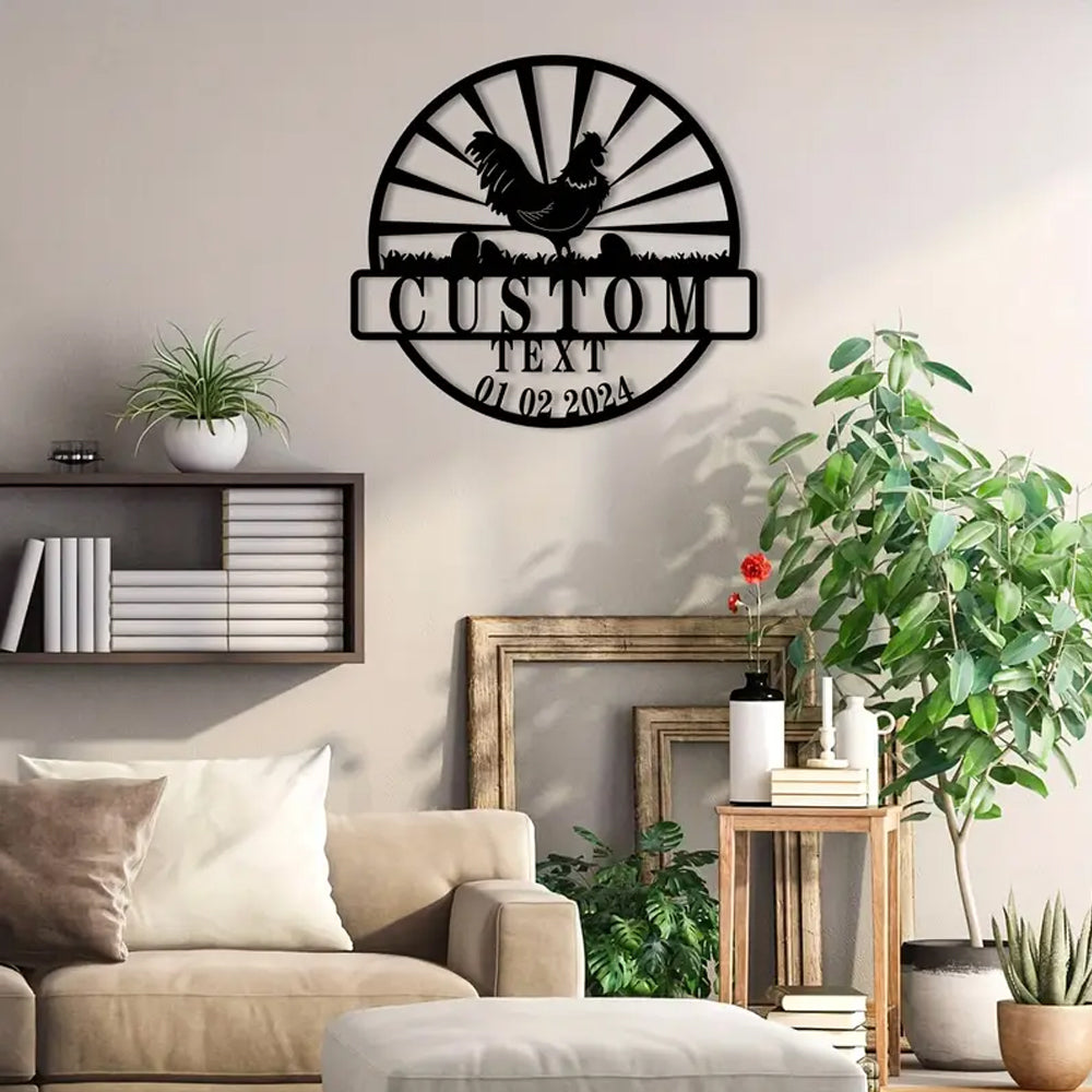 Personalised Farmhouse Rooster Sign Metal Wall Art Decoration
