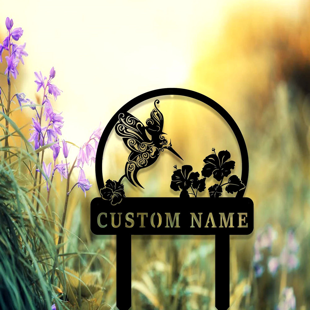 Custom Hummingbird and Flower Outdoor Yard Metal Garden Art Decoration