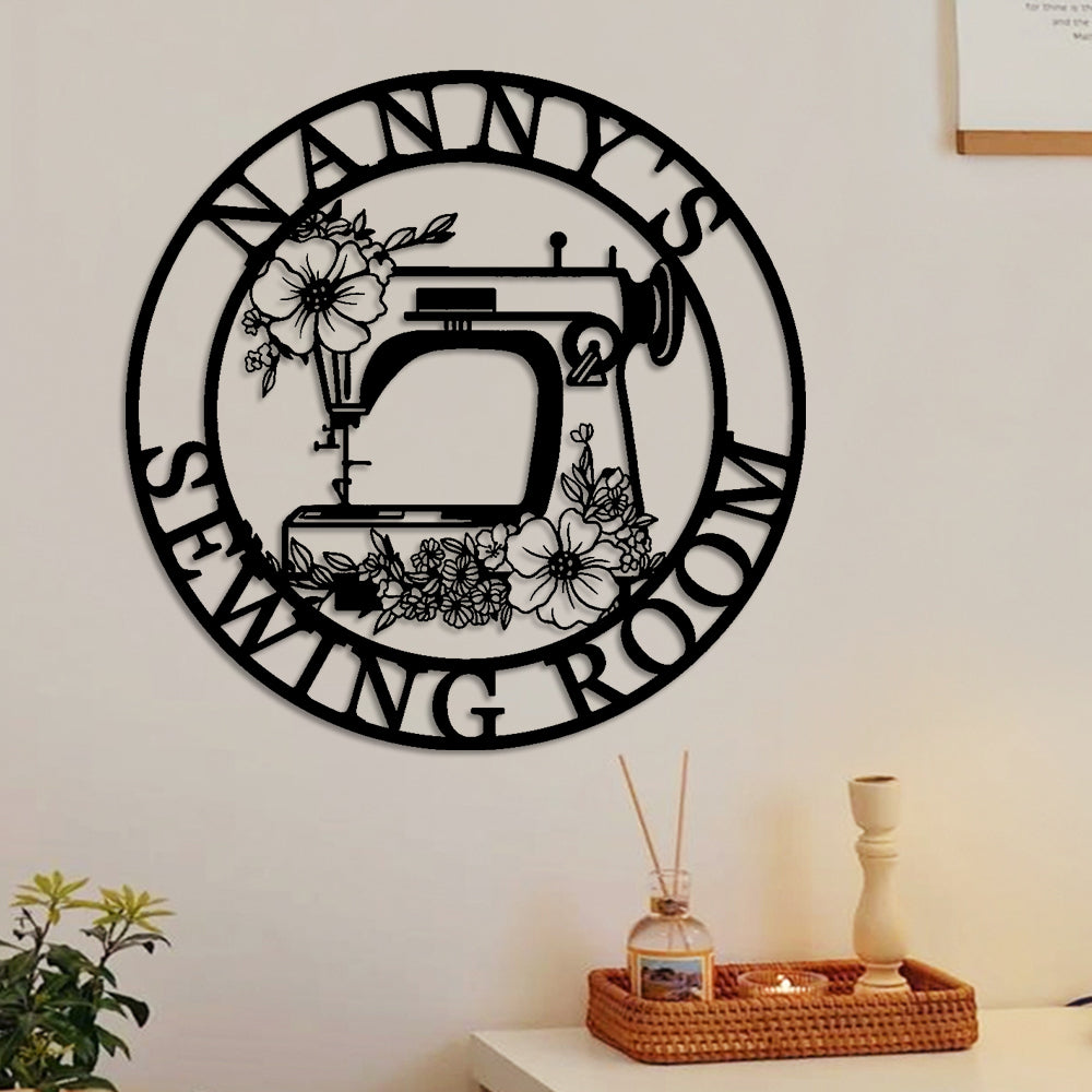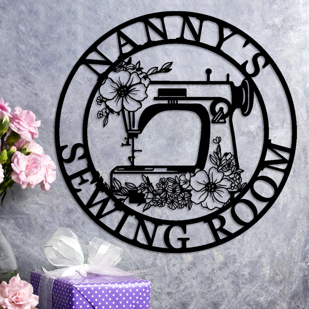 Personalised Custom Sewing Room with Flower Metal Wall Art Decoration