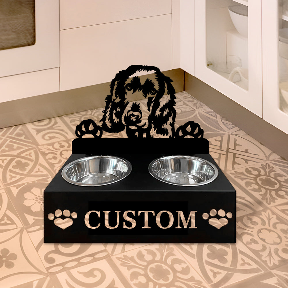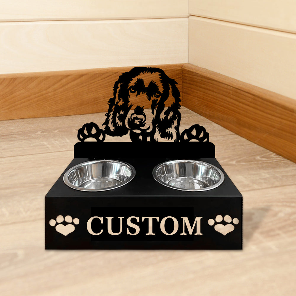 English Cocker Spaniel Dog Personalized Name Pet Food Bowl Holder
