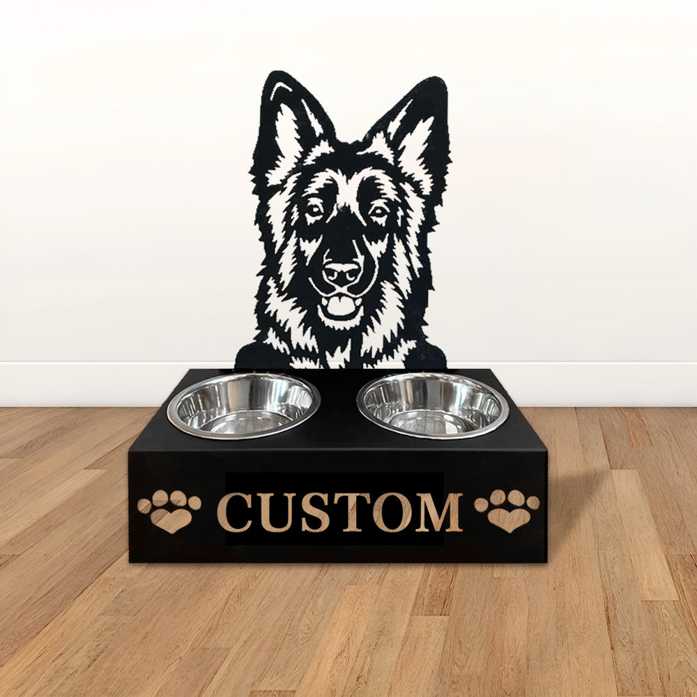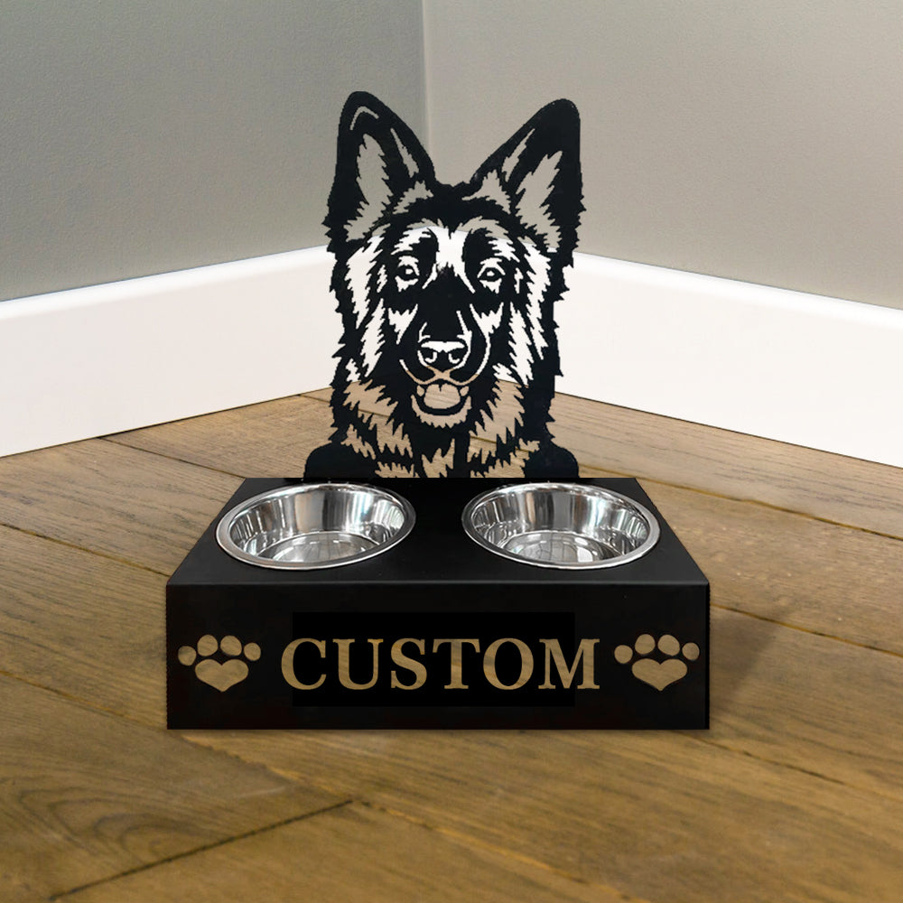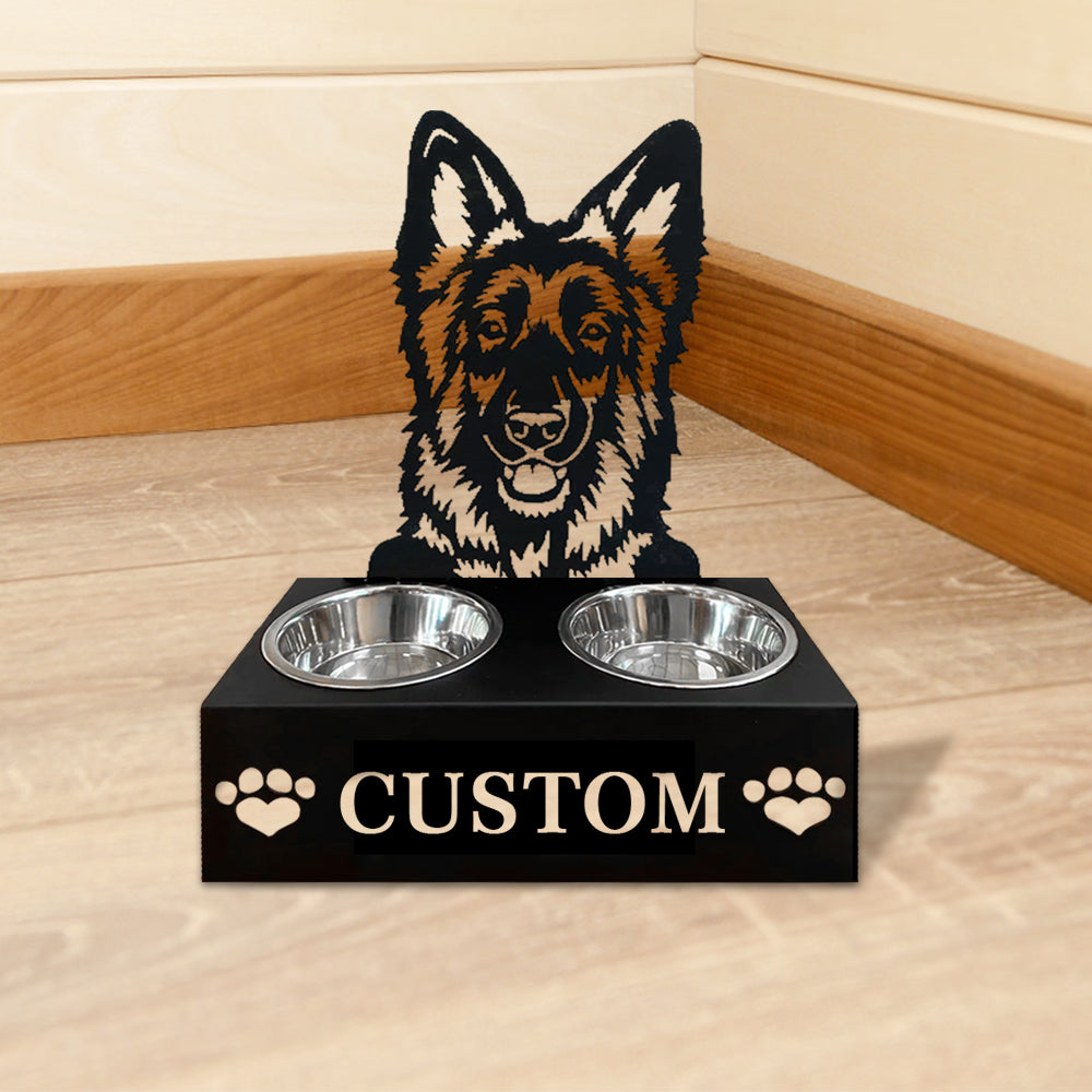 German Shepherd Personalized Name Pet Food Bowl Holder