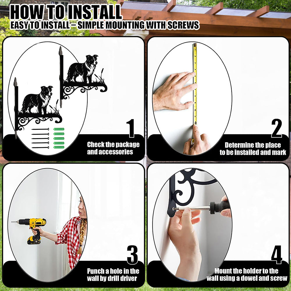 Border Collie Metal Hanging Bracket Plant Stand