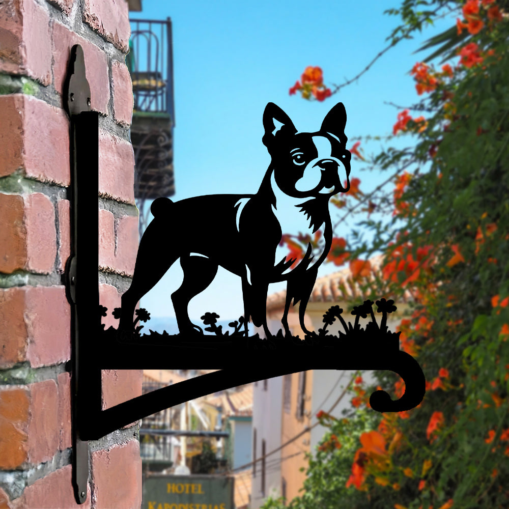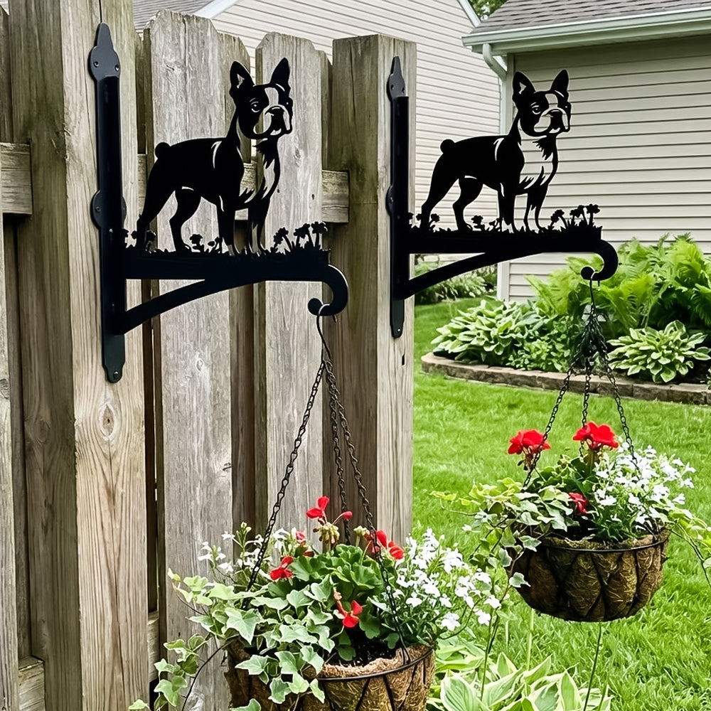 Boston Terrier Metal Hanging Bracket Plant Stand