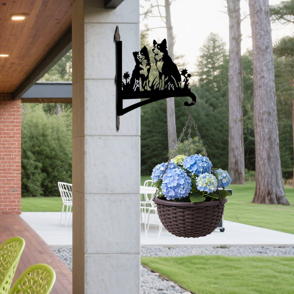 Two Border Collies Metal Hanging Bracket Plant Stand