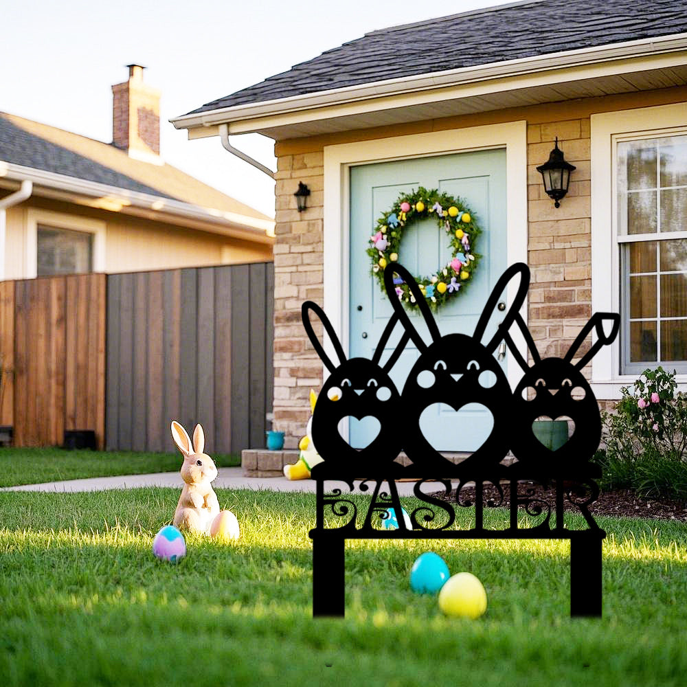 Easter Bunnies Metal Sign Outdoor Yard Decoration