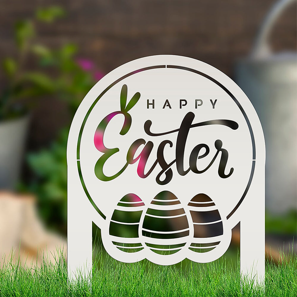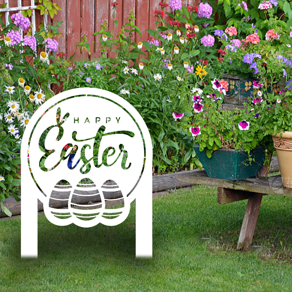 Happy Easter Eggs Metal Sign Outdoor Yard Decoration