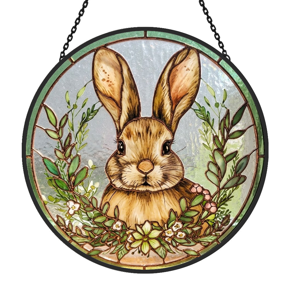 Easter Bunny and Flower Stained Glass Sun Catcher - Window Hanging Decoration