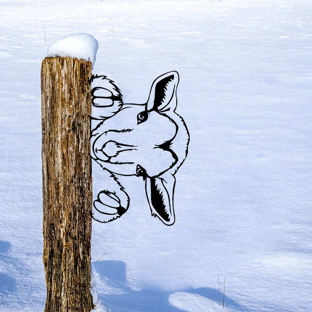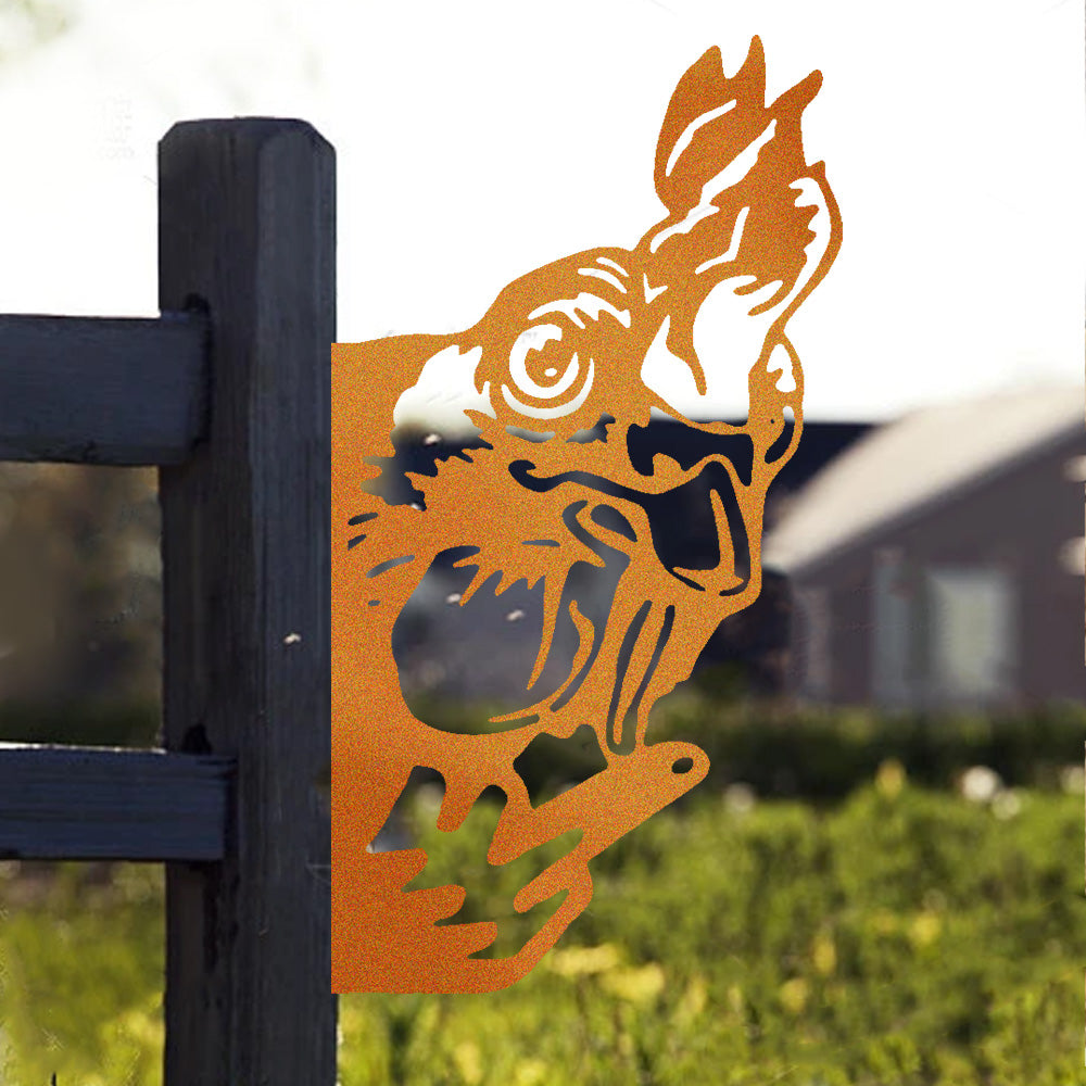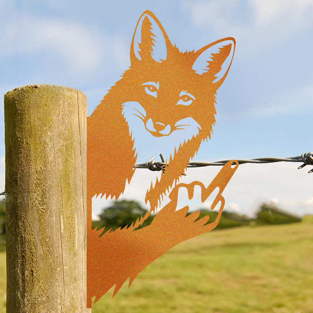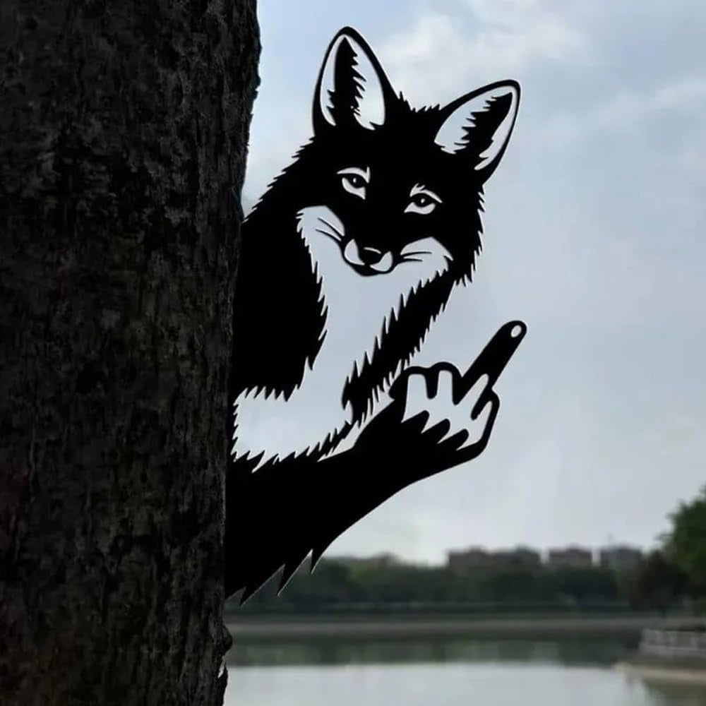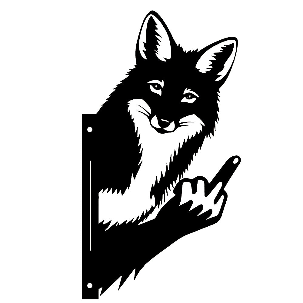 Funny Fox Flipping Off Metal Sign - Peeking Animal Yard Art Decor