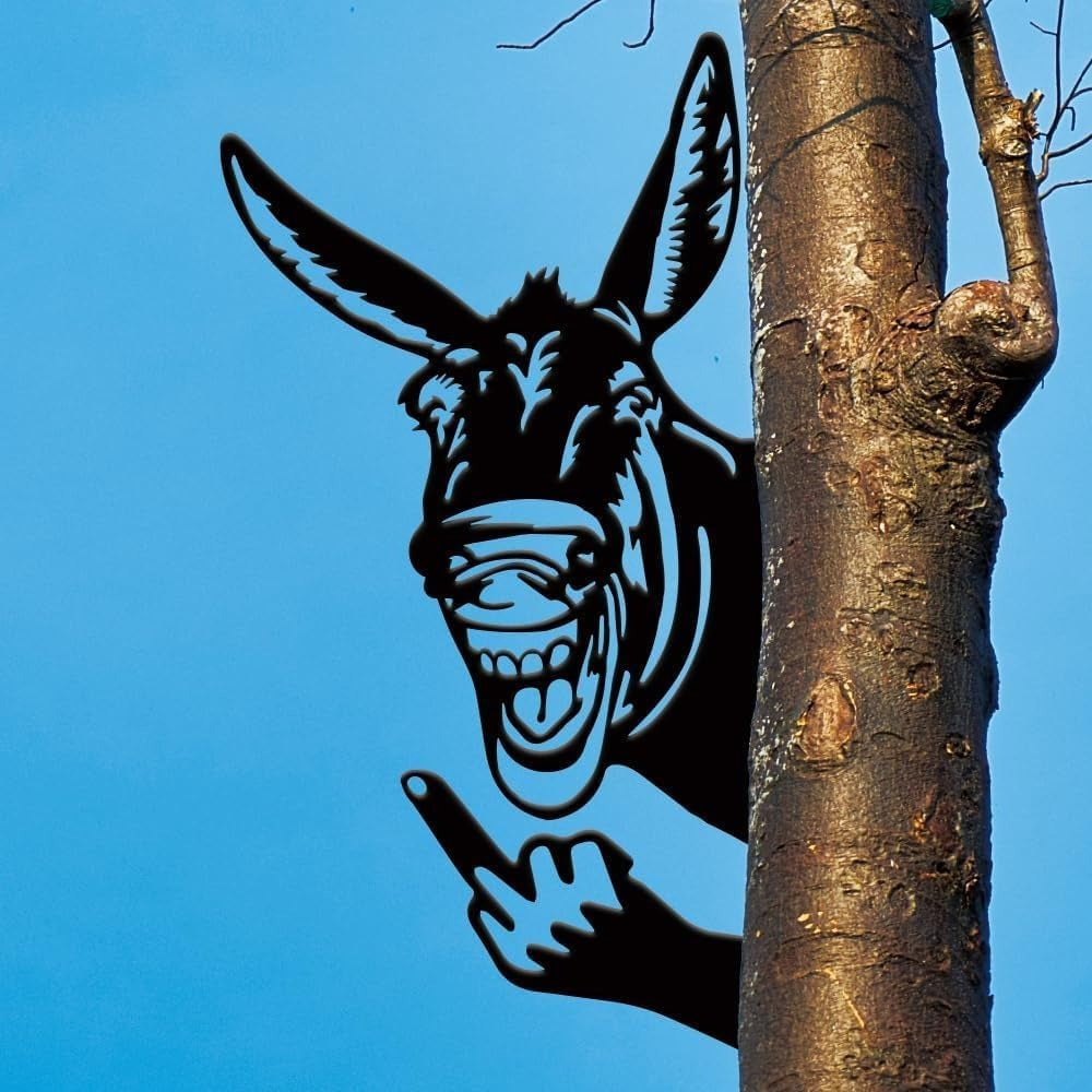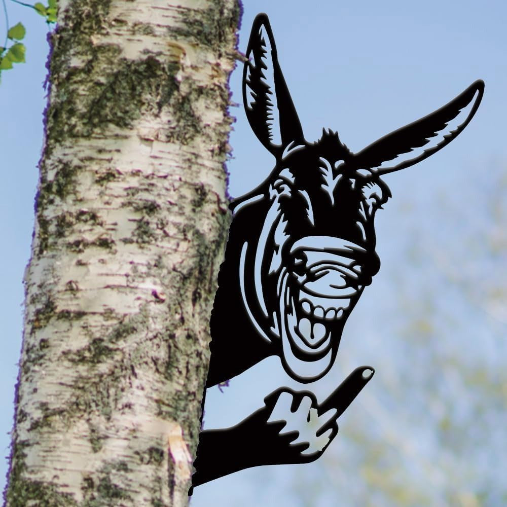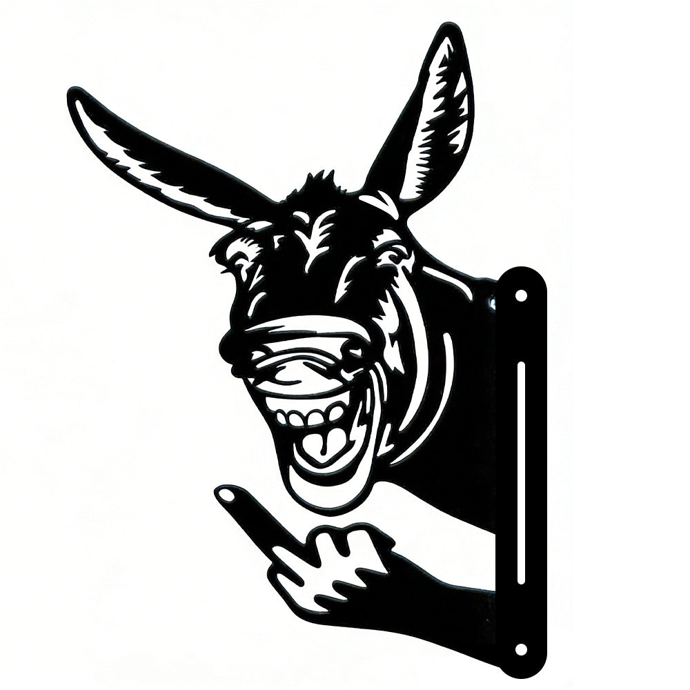 Funny Donkey Flipping Off Metal Sign - Peeking Animal Yard Art Decor