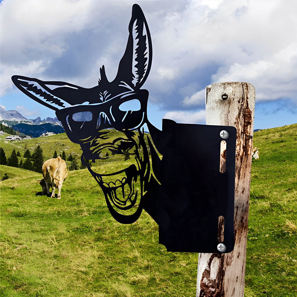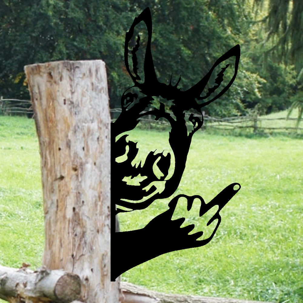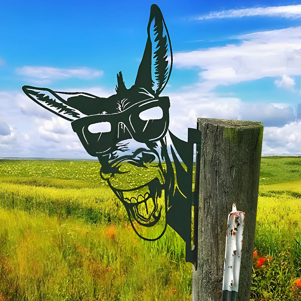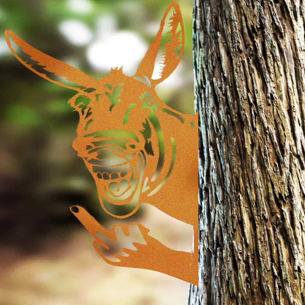 Funny Donkey Flipping Off Metal Sign - Peeking Animal Yard Art Decor