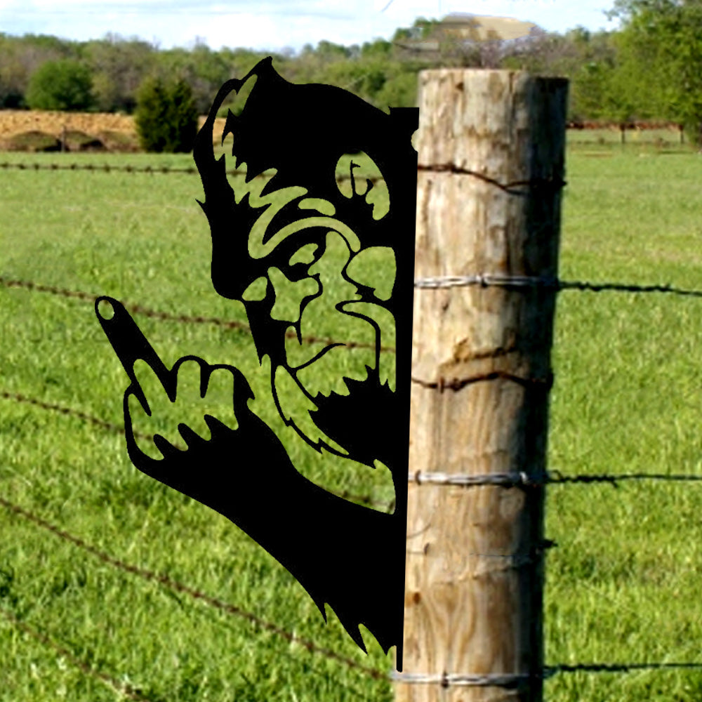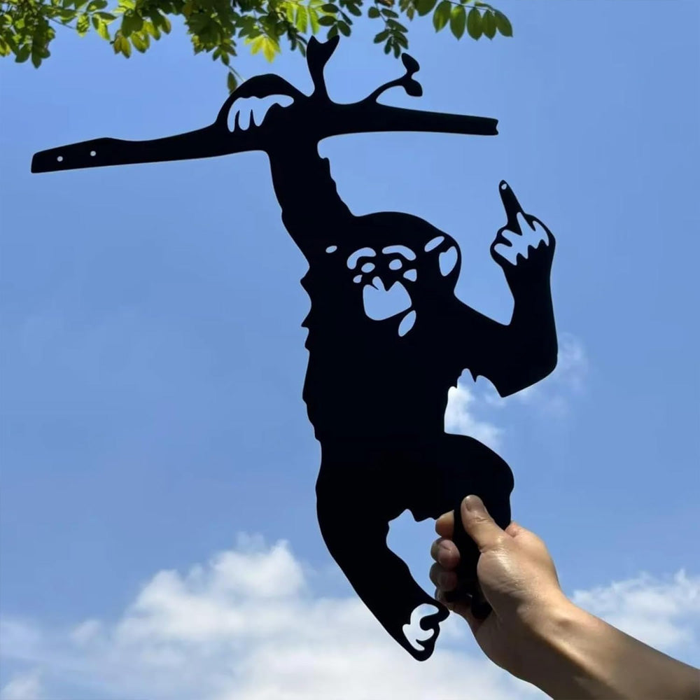 Funny Monkey Flipping Off Metal Sign - Peeking Animal Yard Art Decor