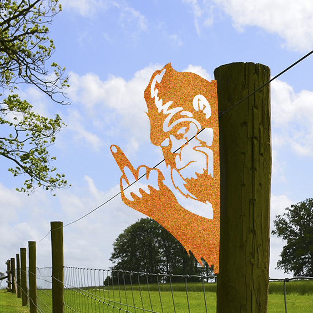 Bulldog Farm Peeping Animal Outdoor Metal Garden Art