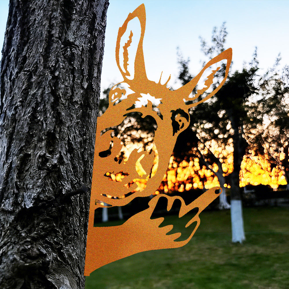 Funny Elk Flipping Off Metal Sign - Peeking Animal Yard Art Decor