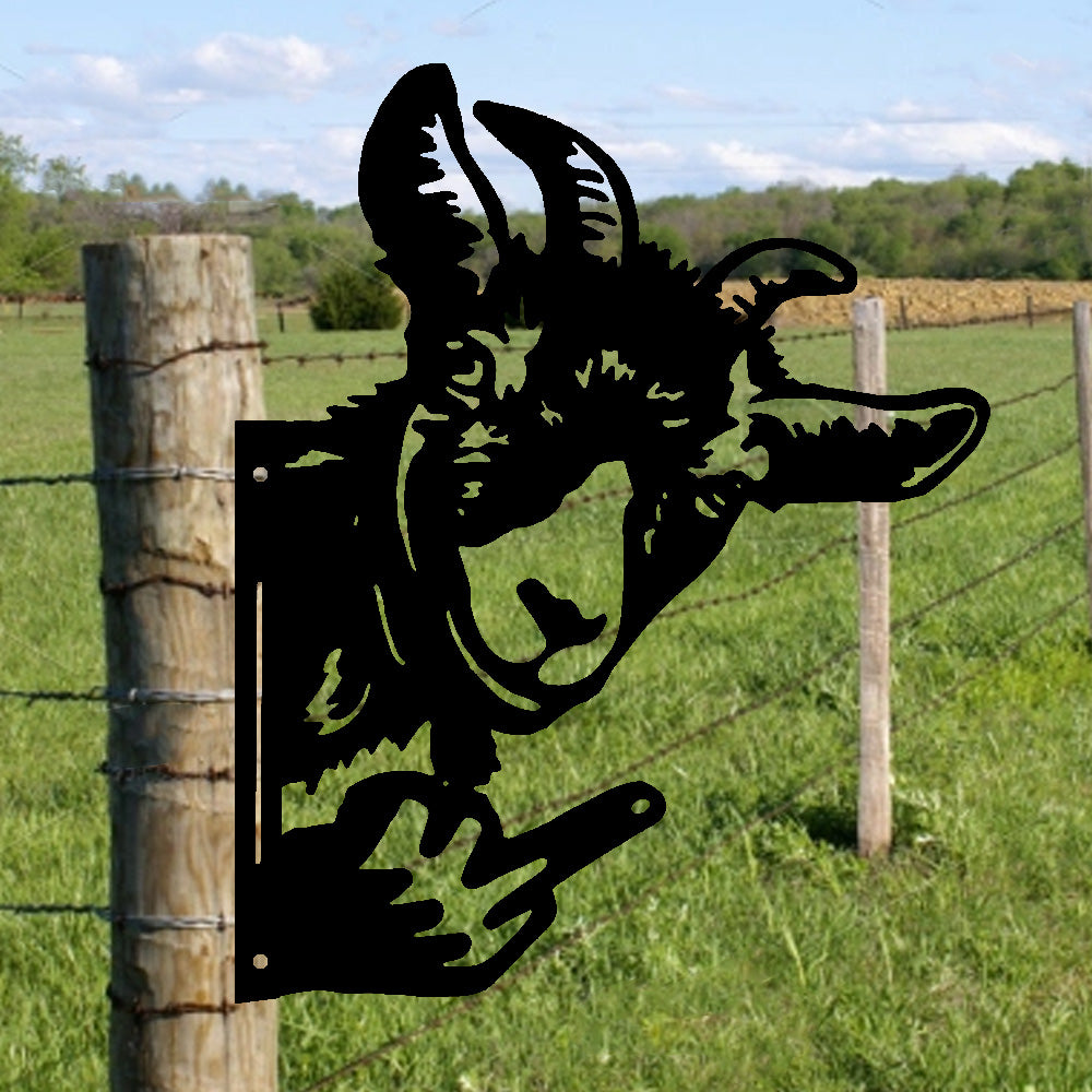 Funny Goat Flipping Off Metal Sign - Peeking Animal Yard Art Decor