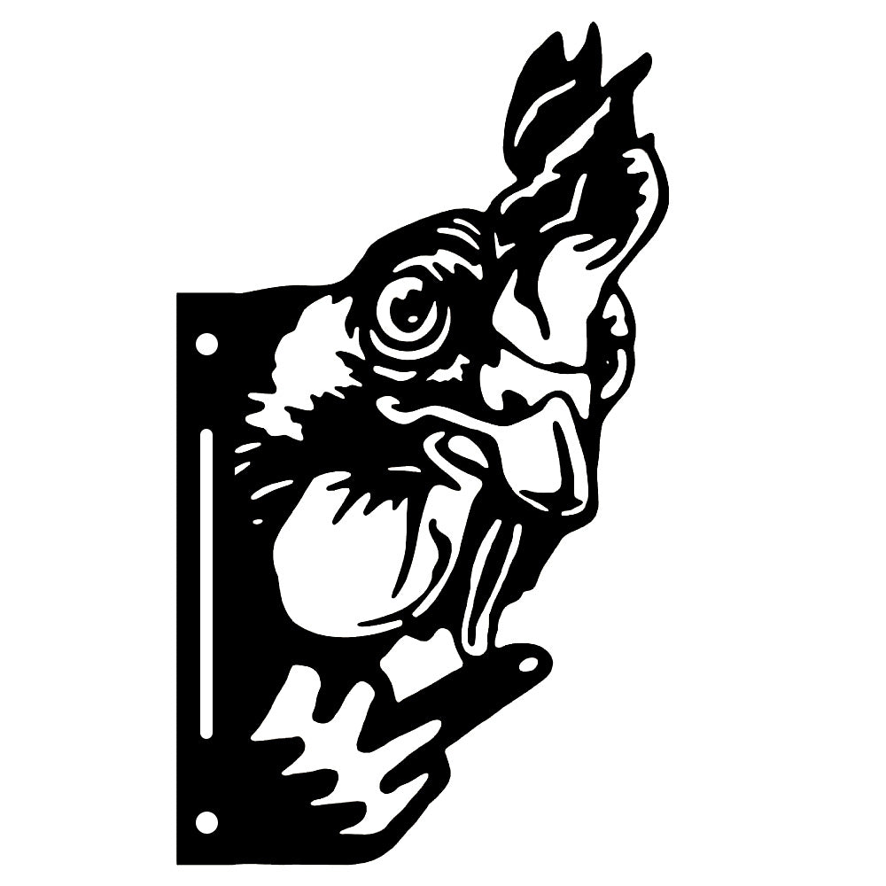 Funny Rooster Flipping Off Metal Sign - Peeking Animal Yard Art Decor