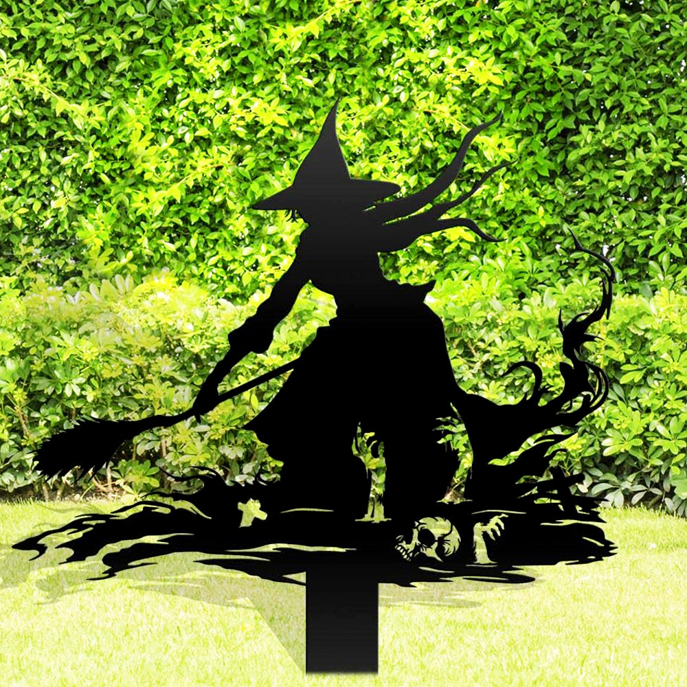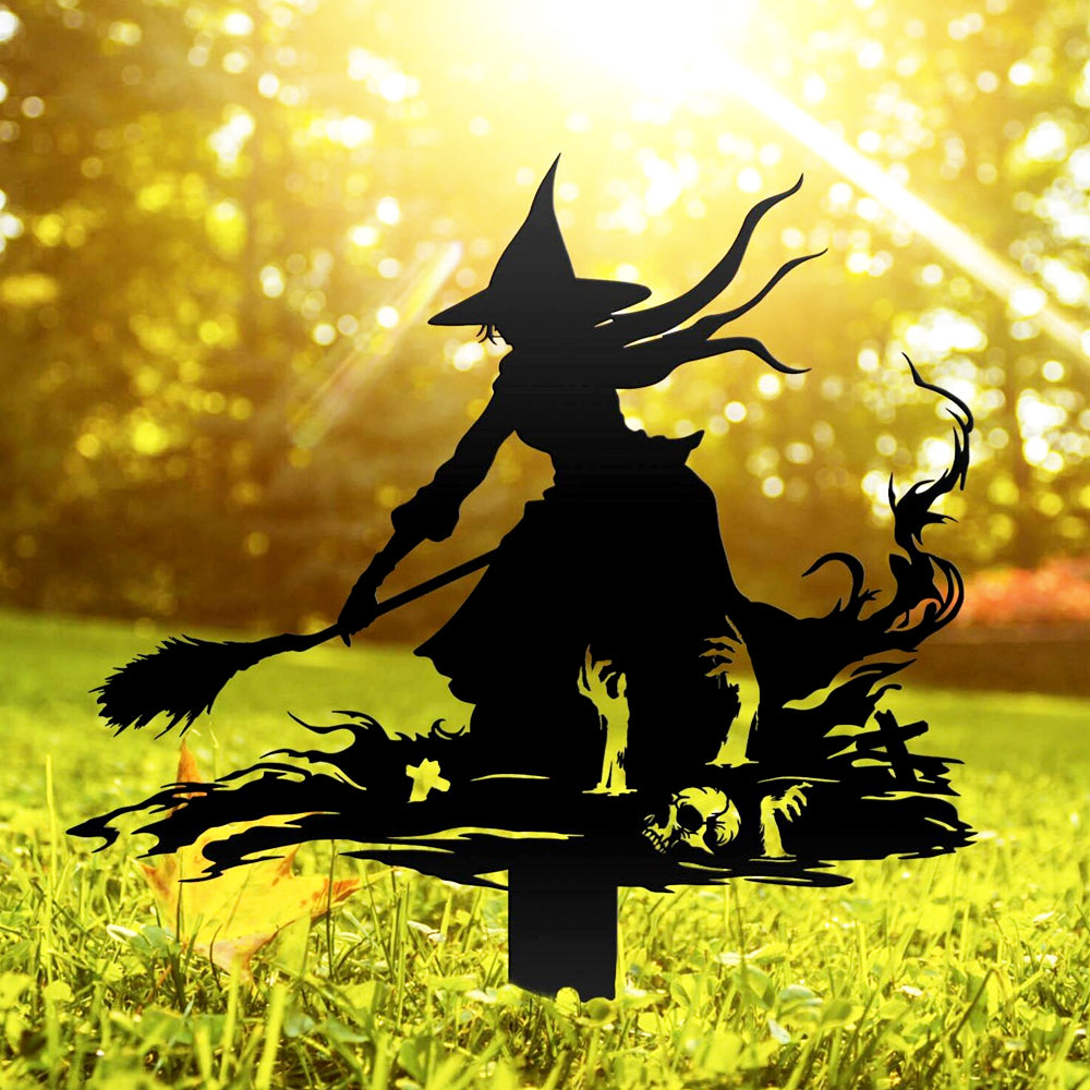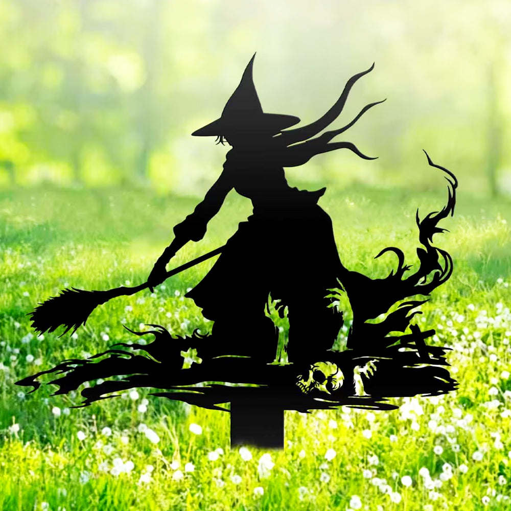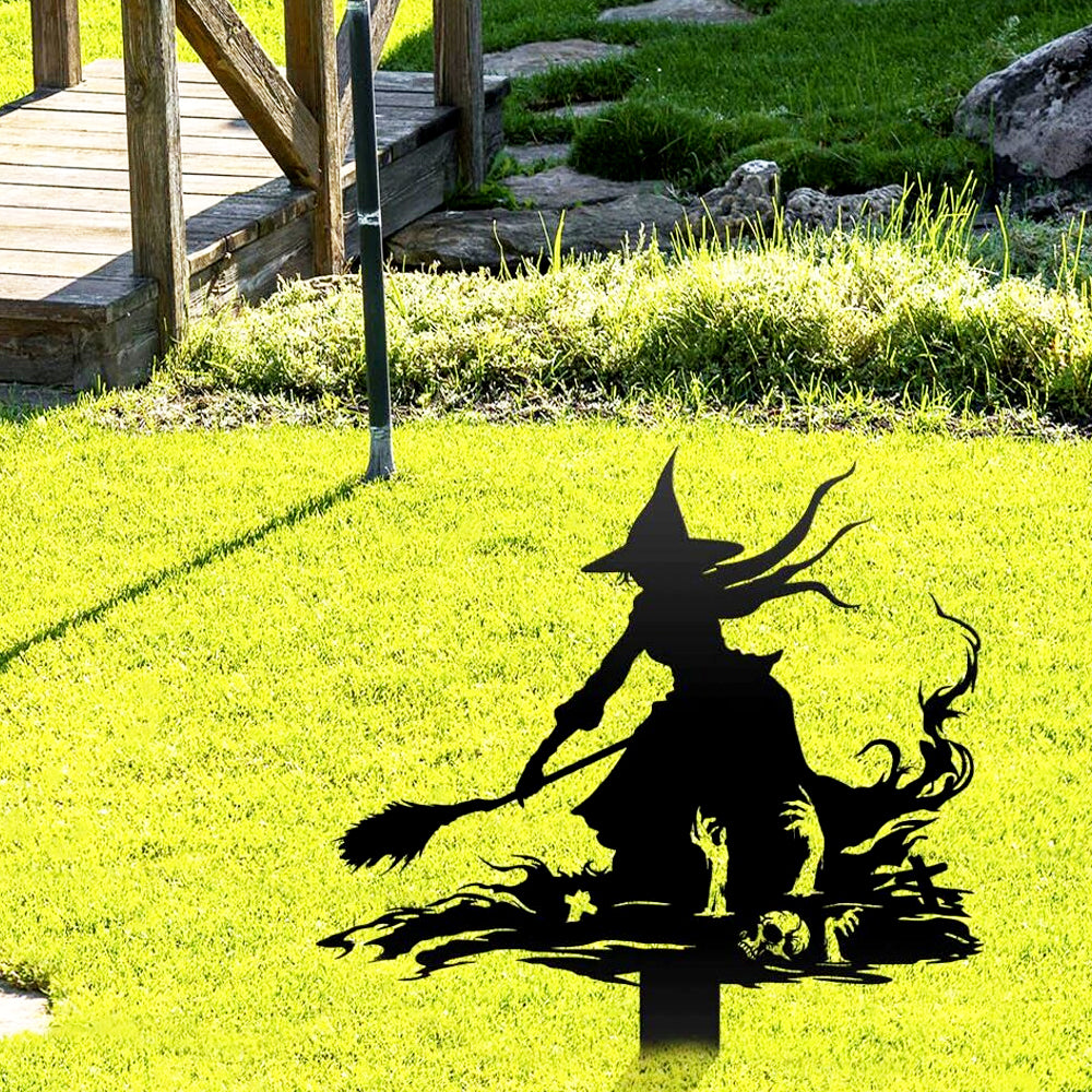 Halloween Witch on Broomstick Metal Yard Stake