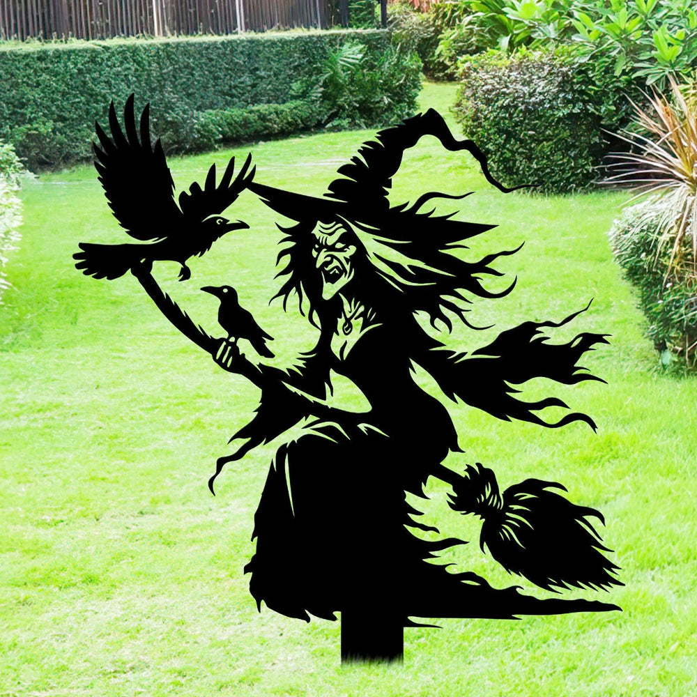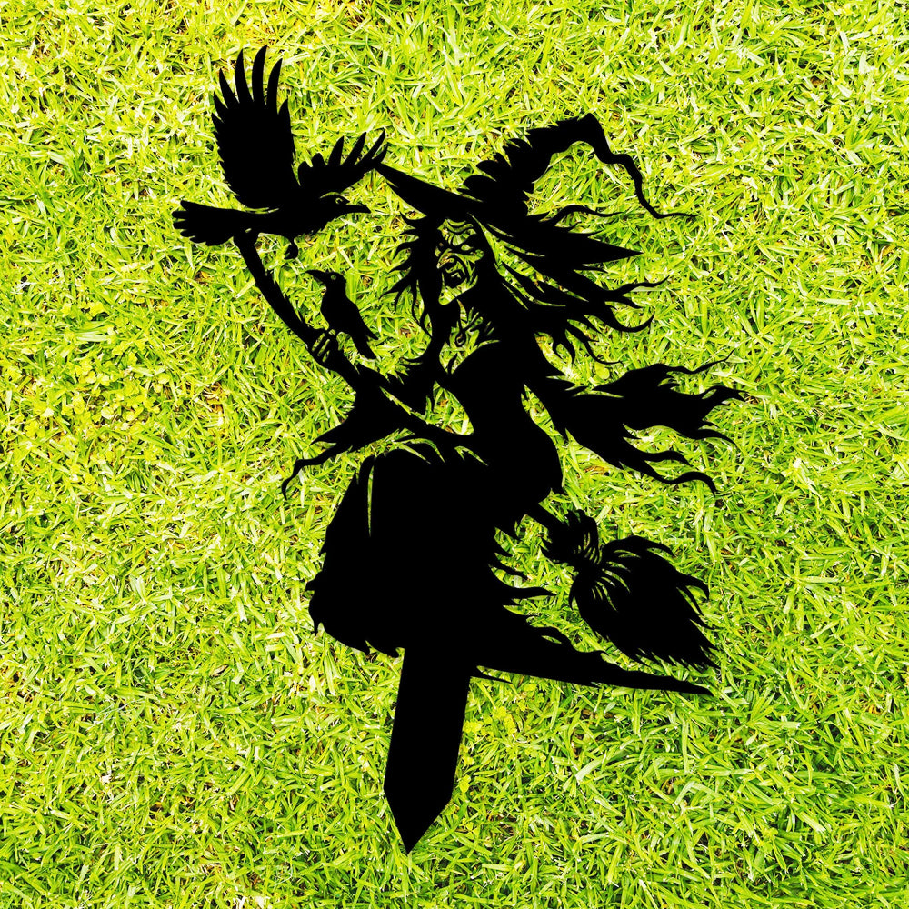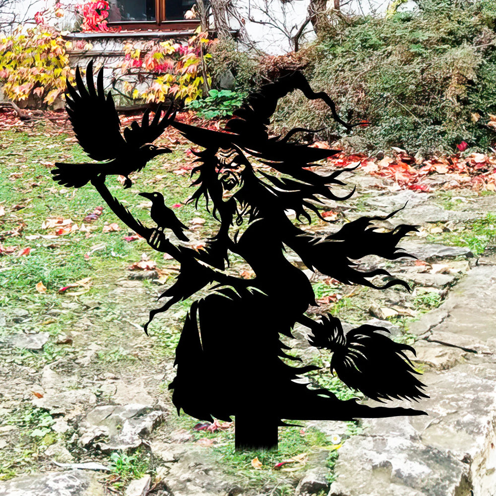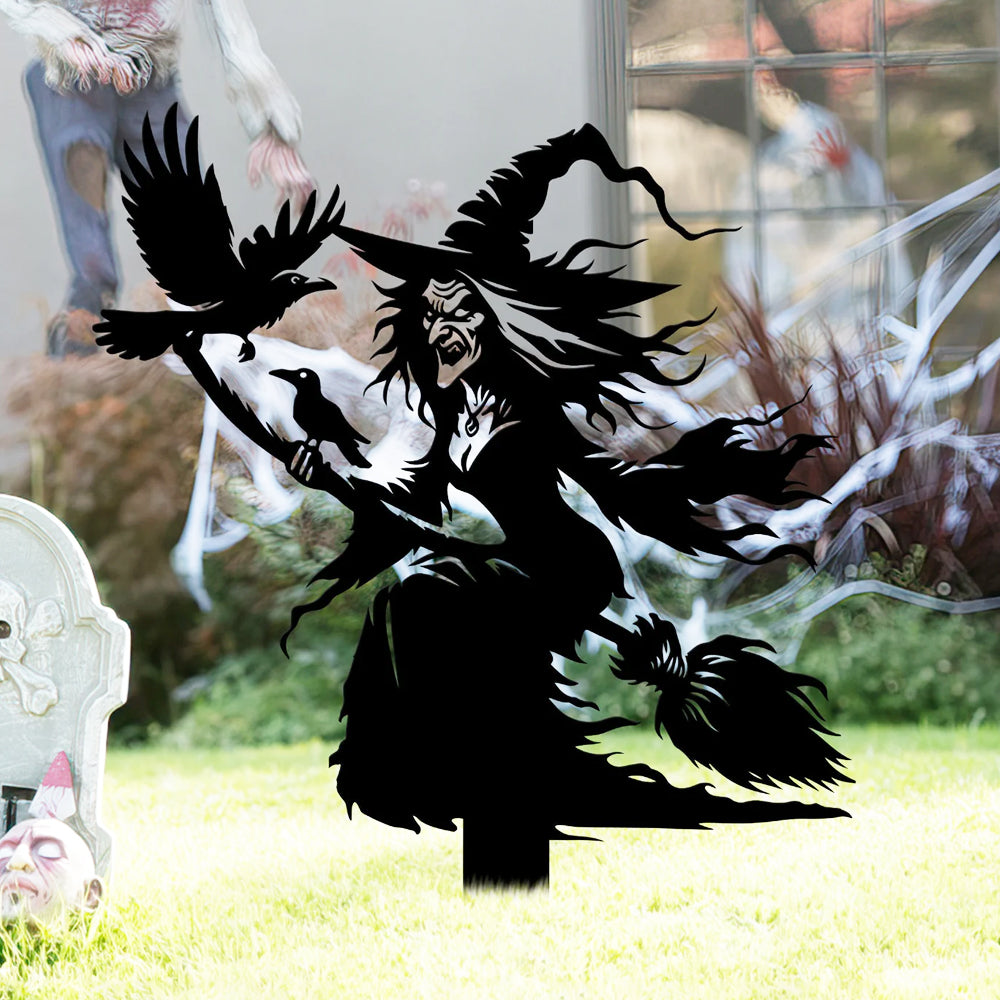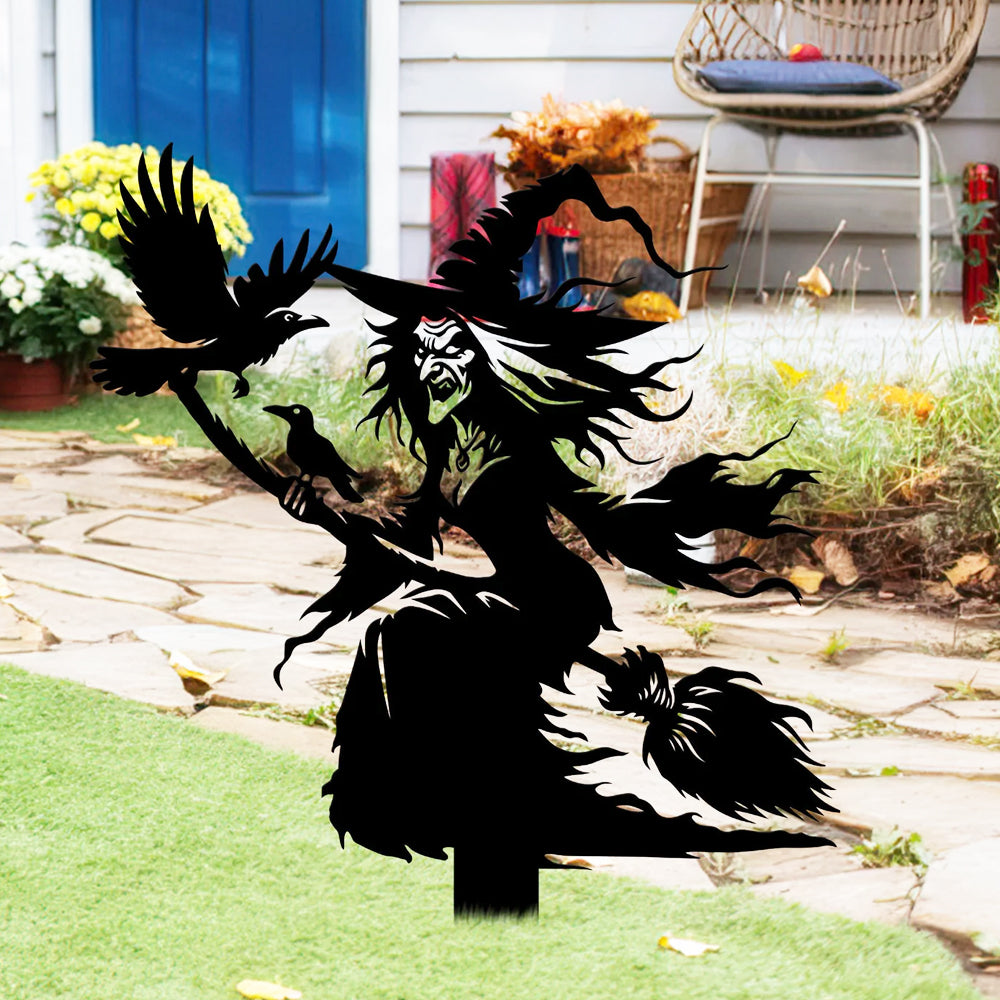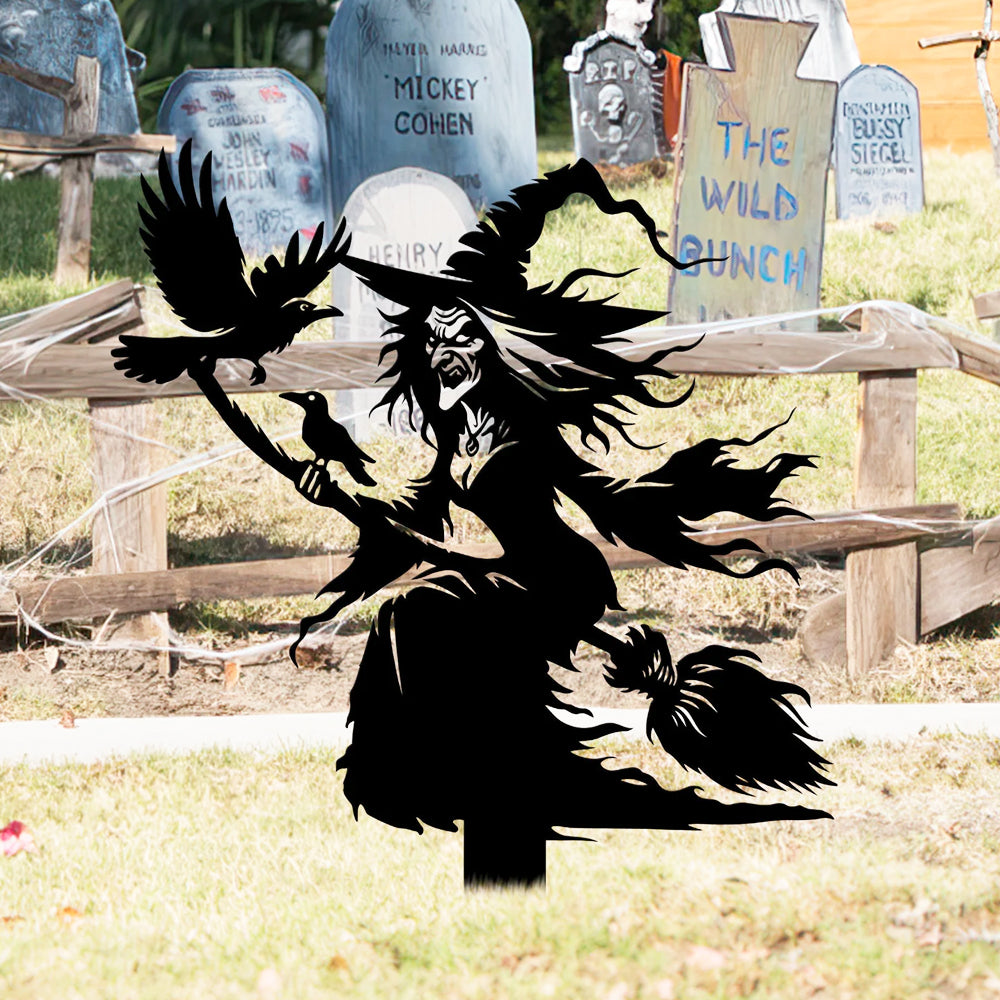 Witch on Broomstick Halloween Metal Yard Stake