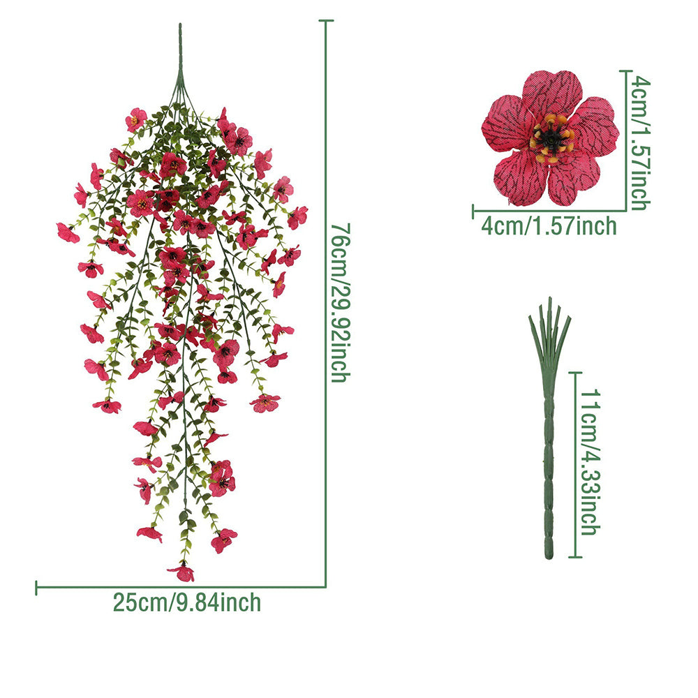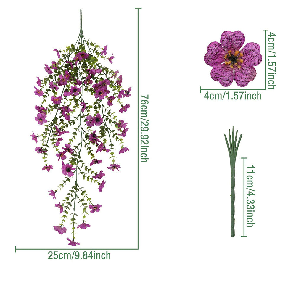 🌸High-quality Materials: The artificial hanging flowers for outdoors are made of high-quality poisonless and harmless PC plastic and silk fabric. You can put this artificial plants & flowers outdoors without any worries because they are double UV-resistant.