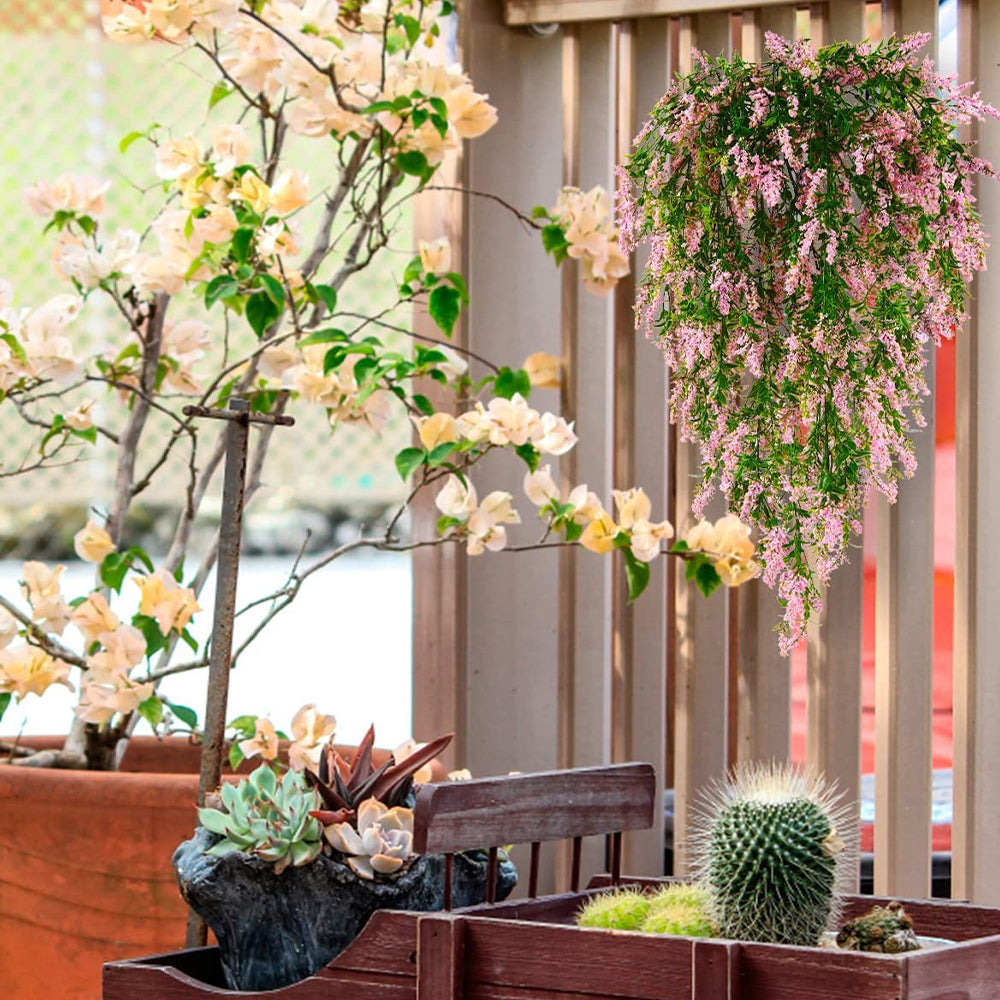 🌸High-quality Materials: The artificial hanging flowers for outdoors are made of high-quality poisonless and harmless PC plastic and silk fabric. You can put this artificial plants & flowers outdoors without any worries because they are double UV-resistant.