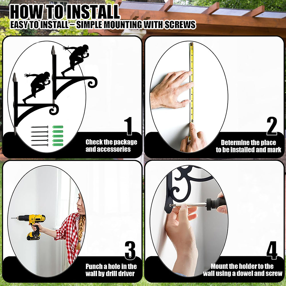 🔨Load-bearing Structure & rust-proof design: We use thickened iron plates material and a triangular fixed design to ensure that the plant hangers provides excellent support; The surface coating is anti-rust baking paint to ensure that the metal hanger has a long lasting life under all weather conditions.