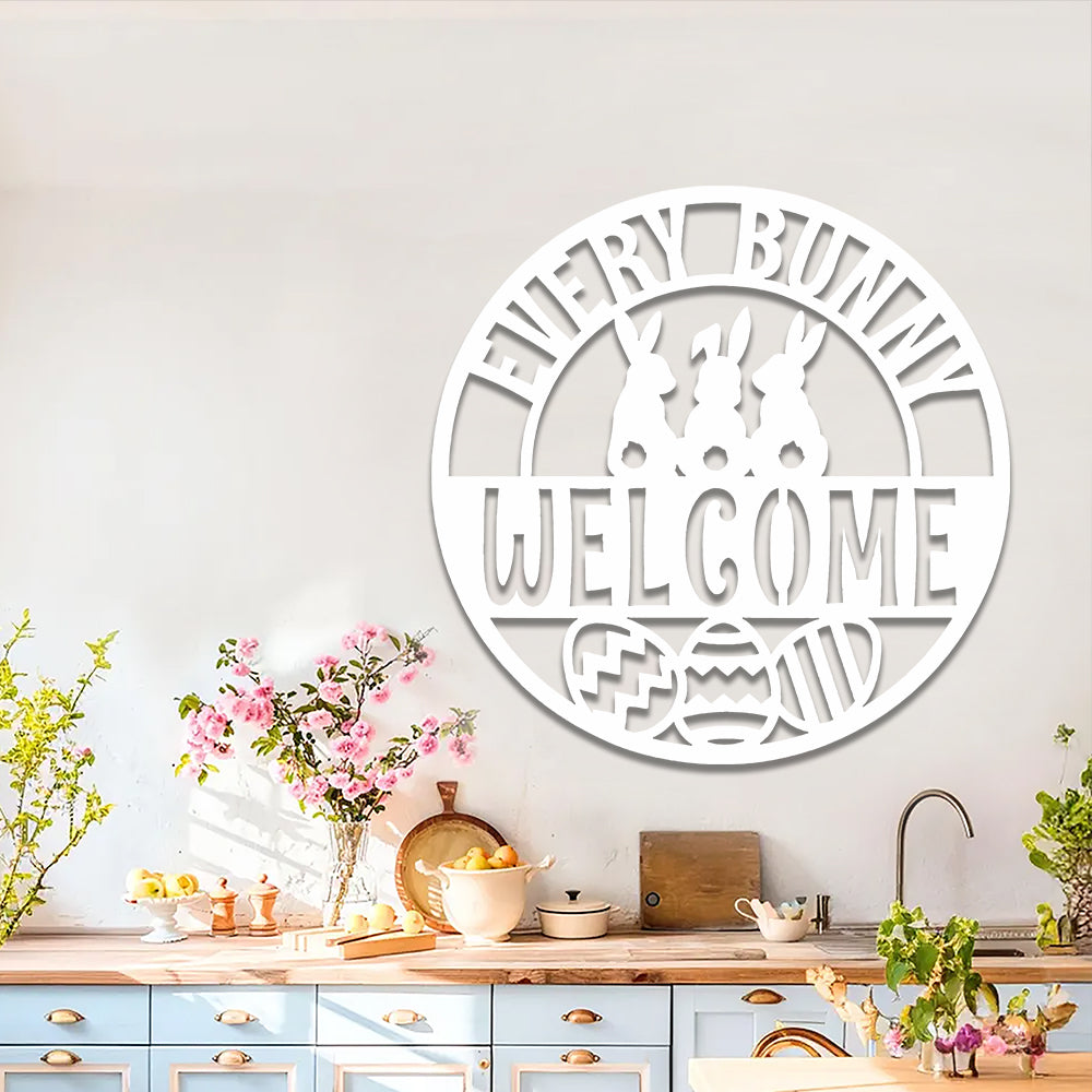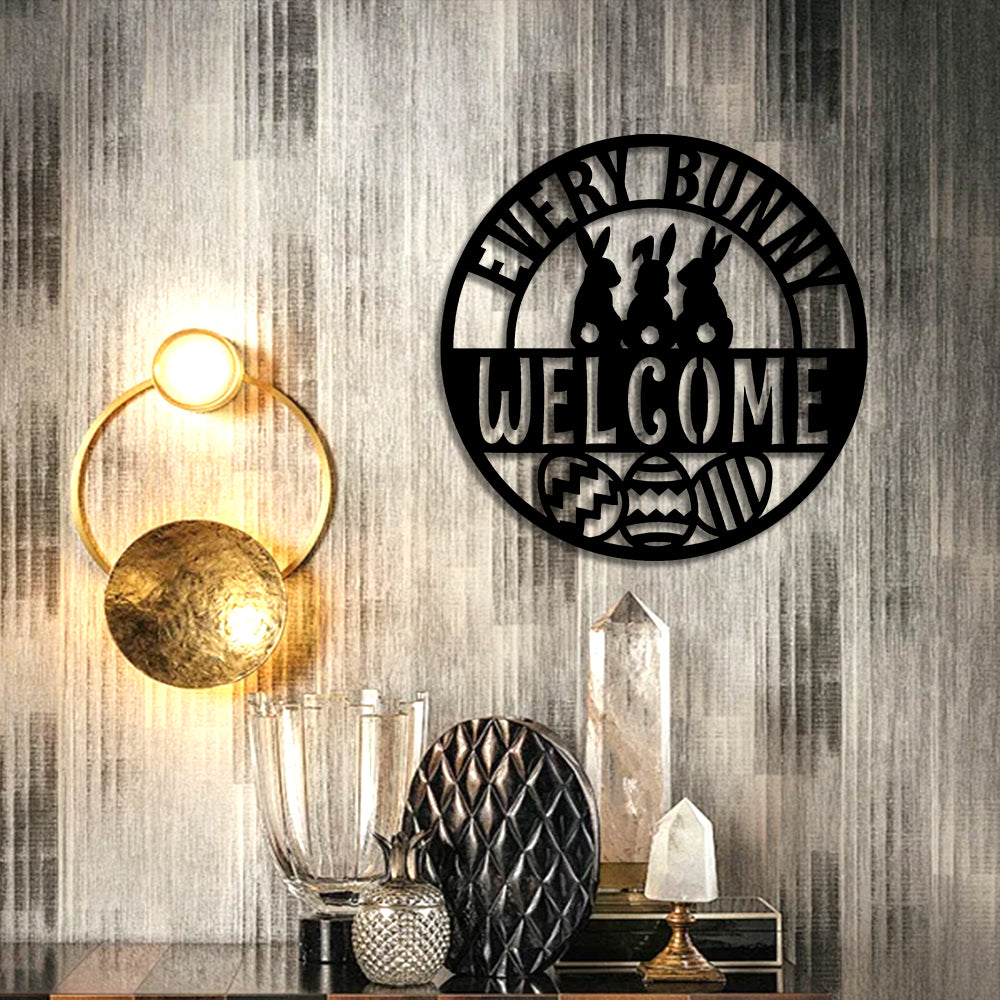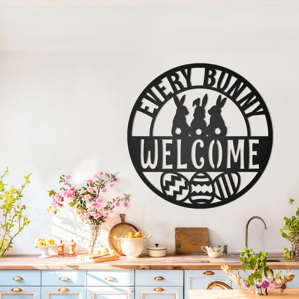 Easter Every Bunny Welcome Stake Sign Metal Wall Art Decoration