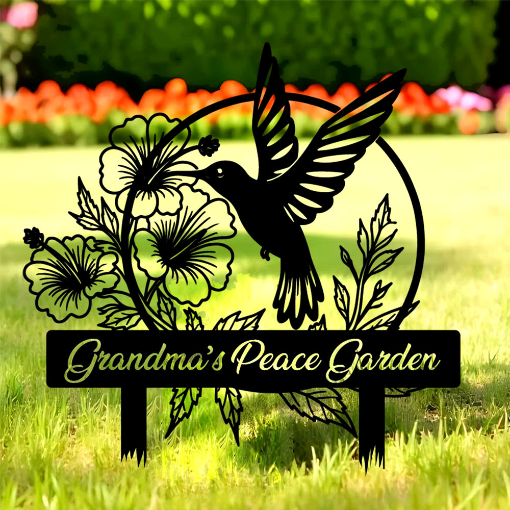 Custom Hummingbird and Flower Outdoor Yard Metal Garden Art Decoration