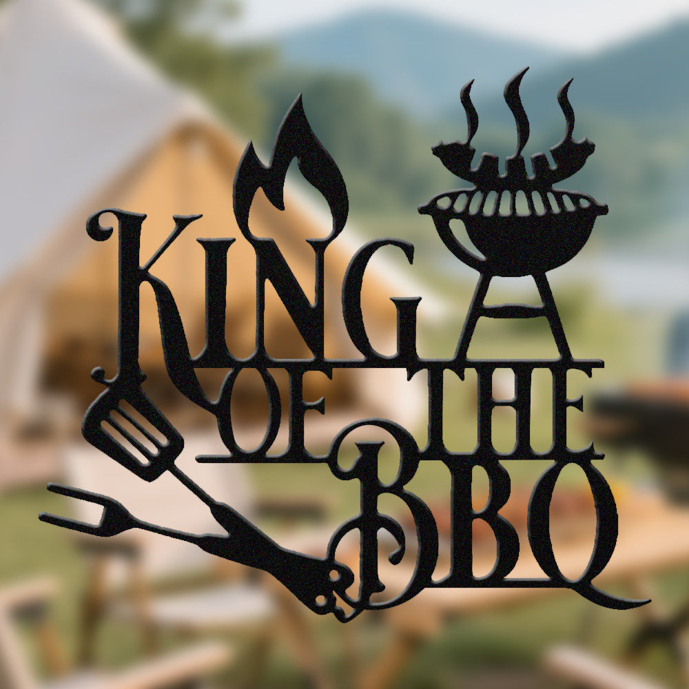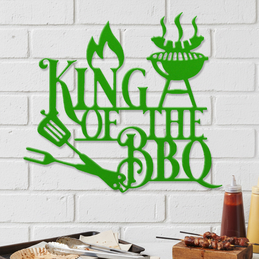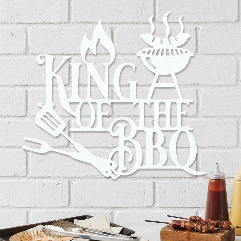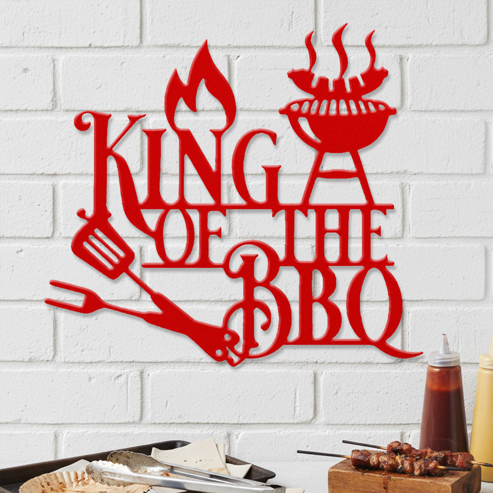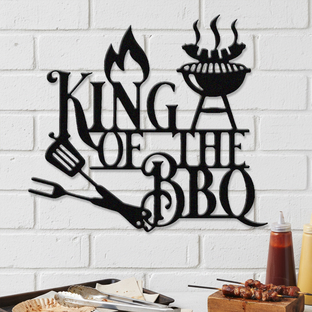 King of BBQ Metal Wall Art - Iron BBQ Grill Decor with Fire and Grill Tools