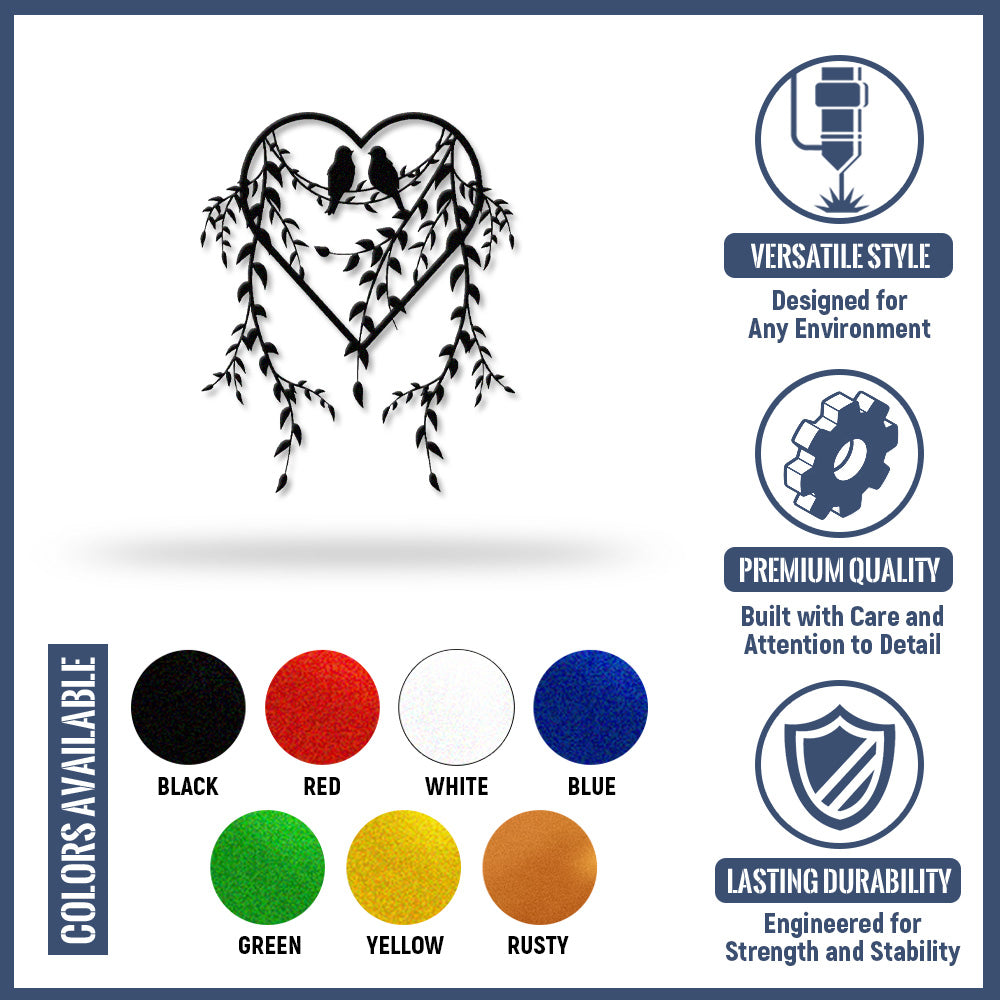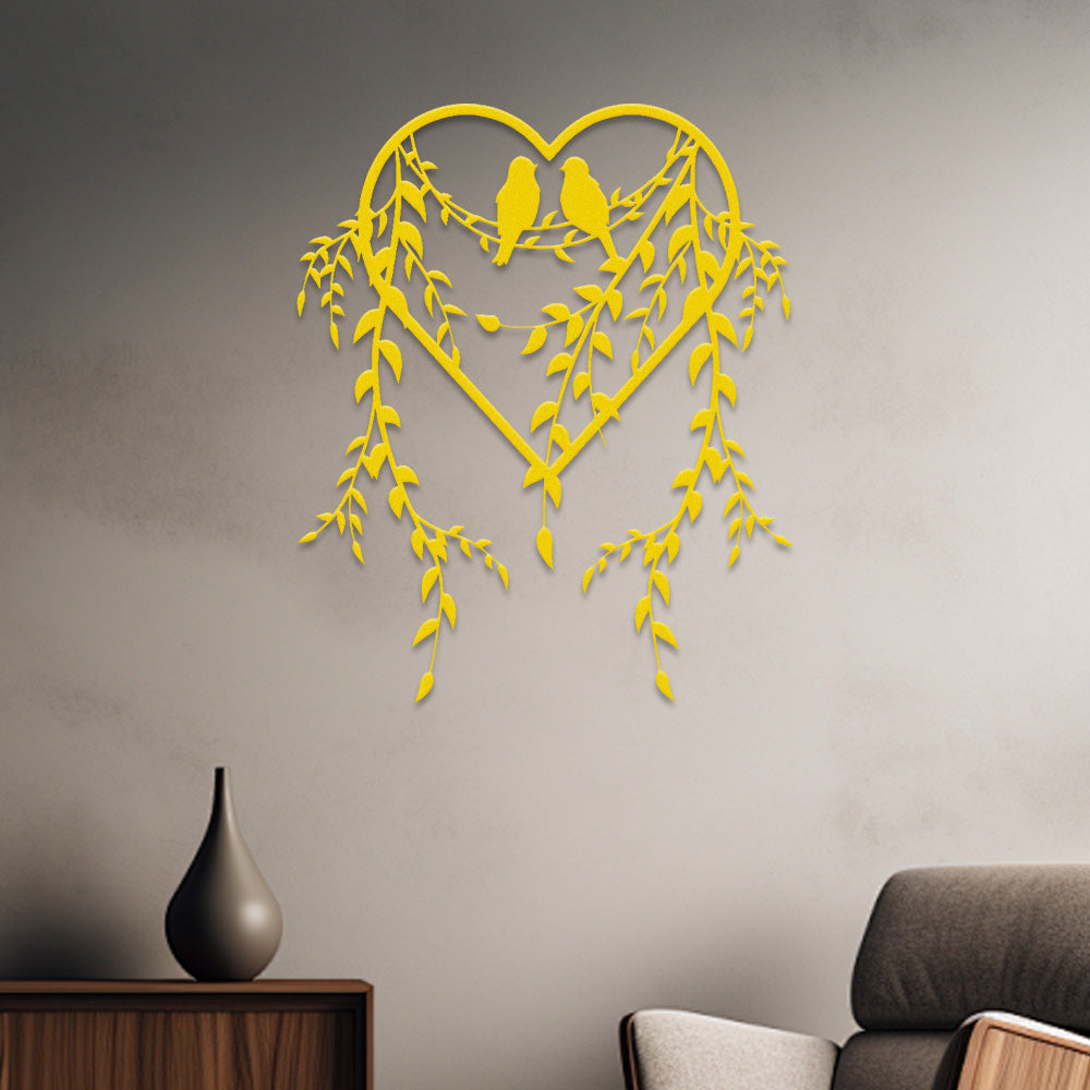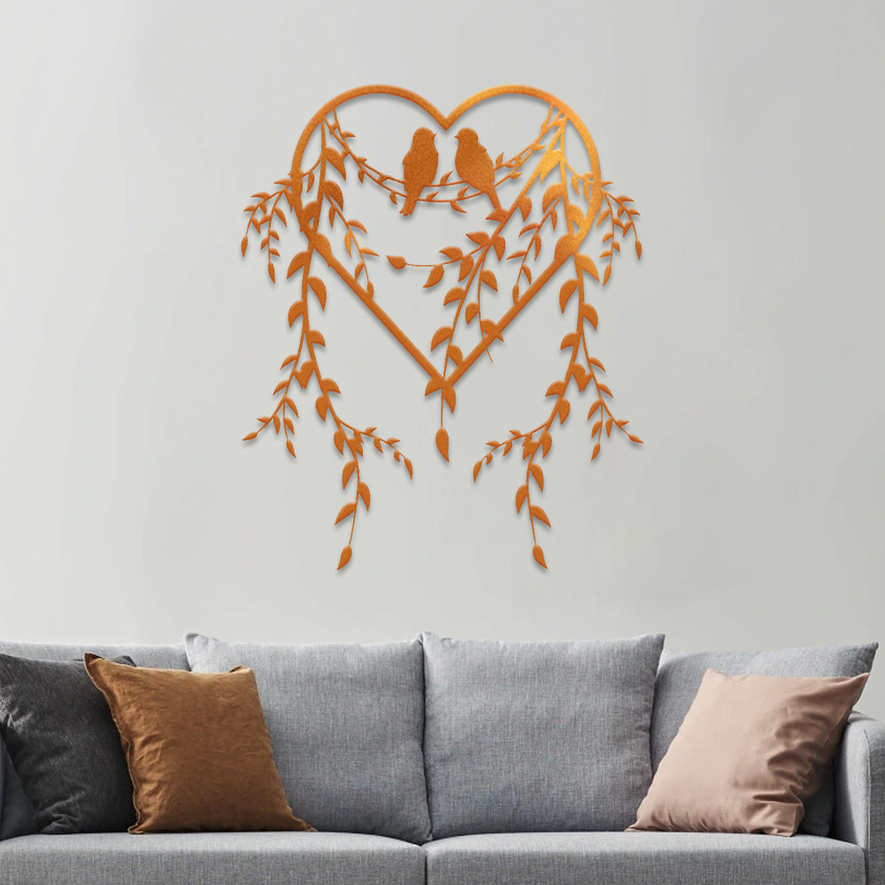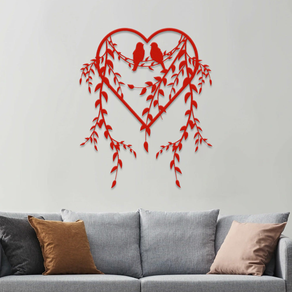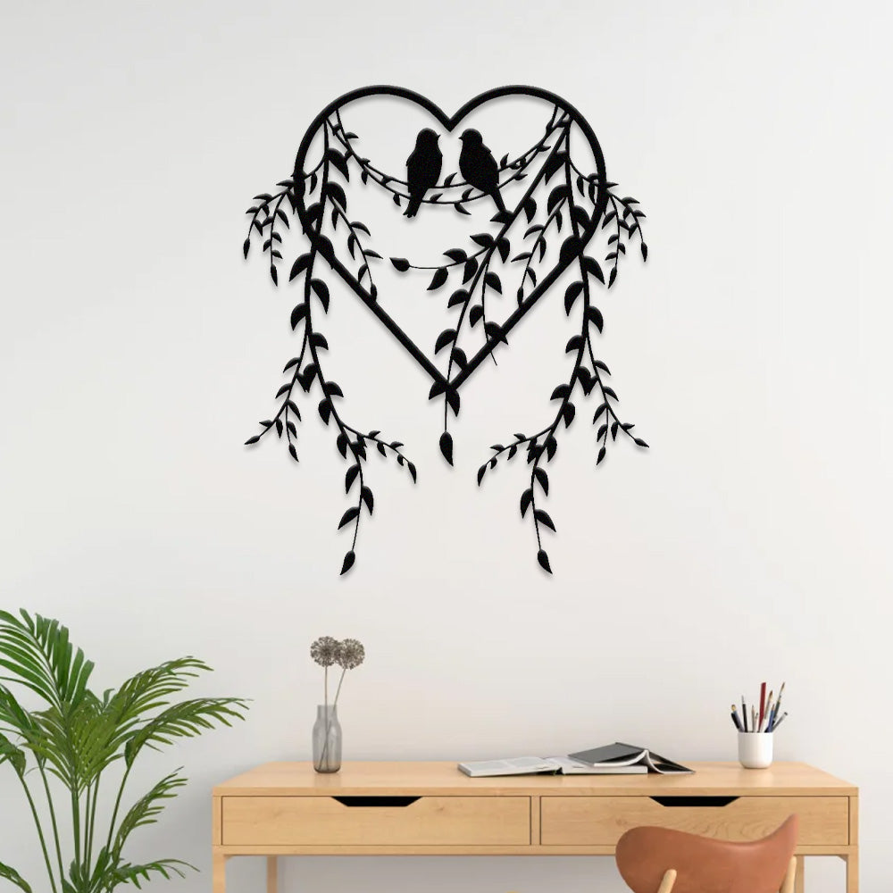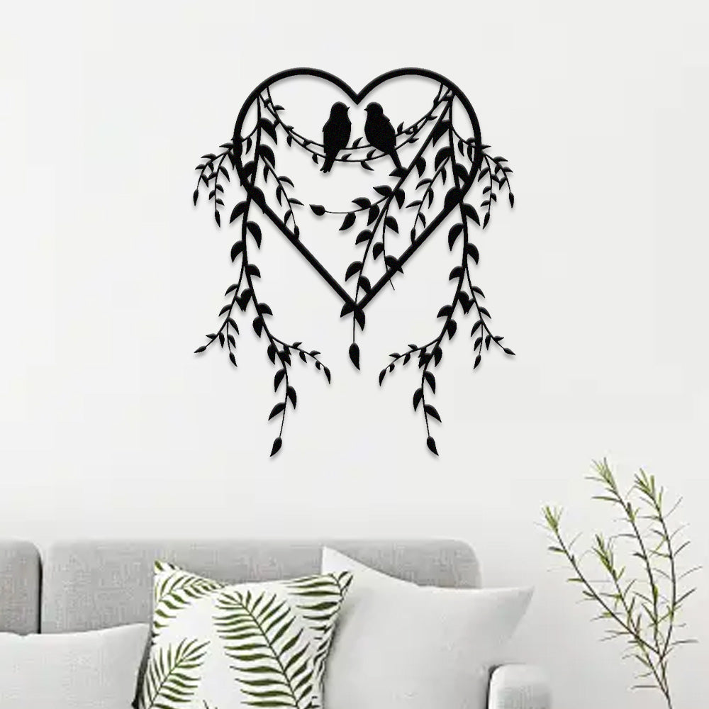 Birds on Branches Heart Design Metal Wall Art