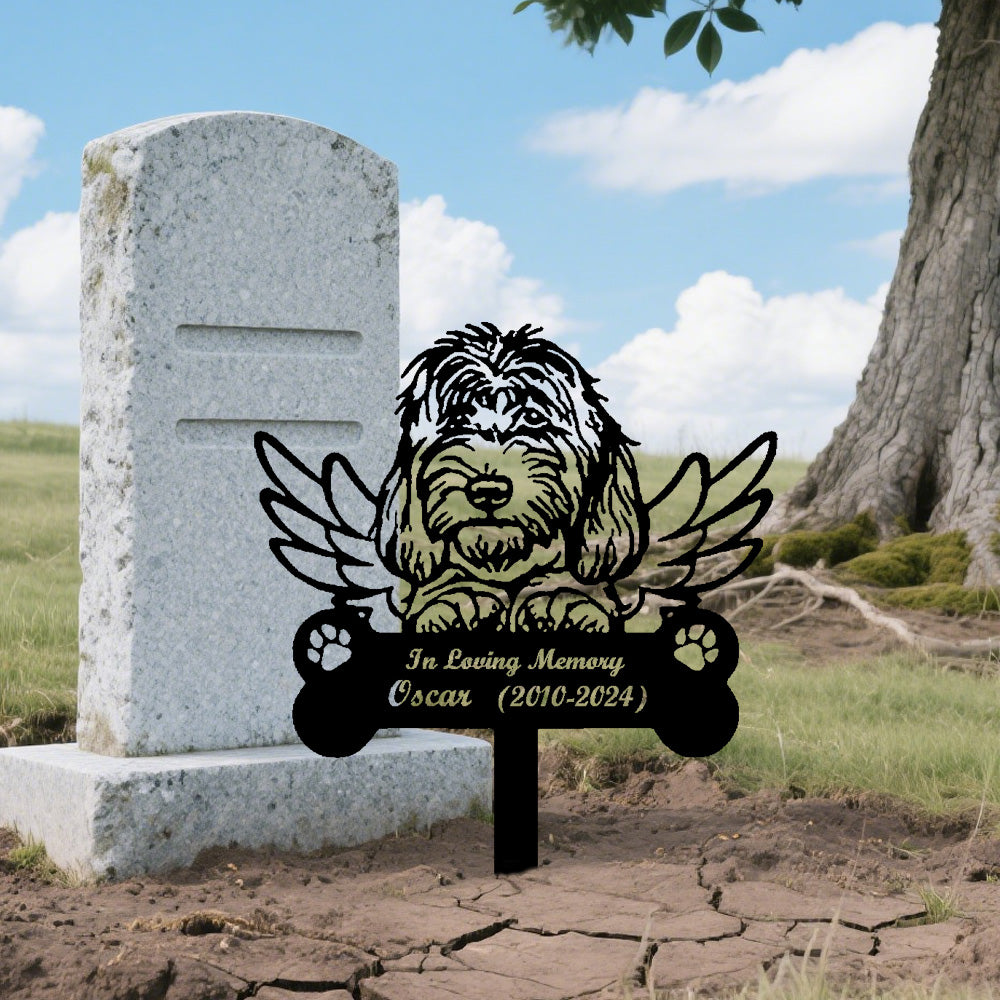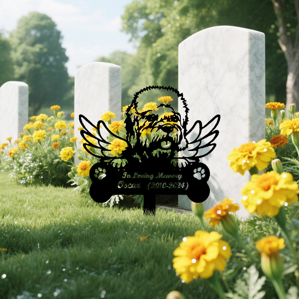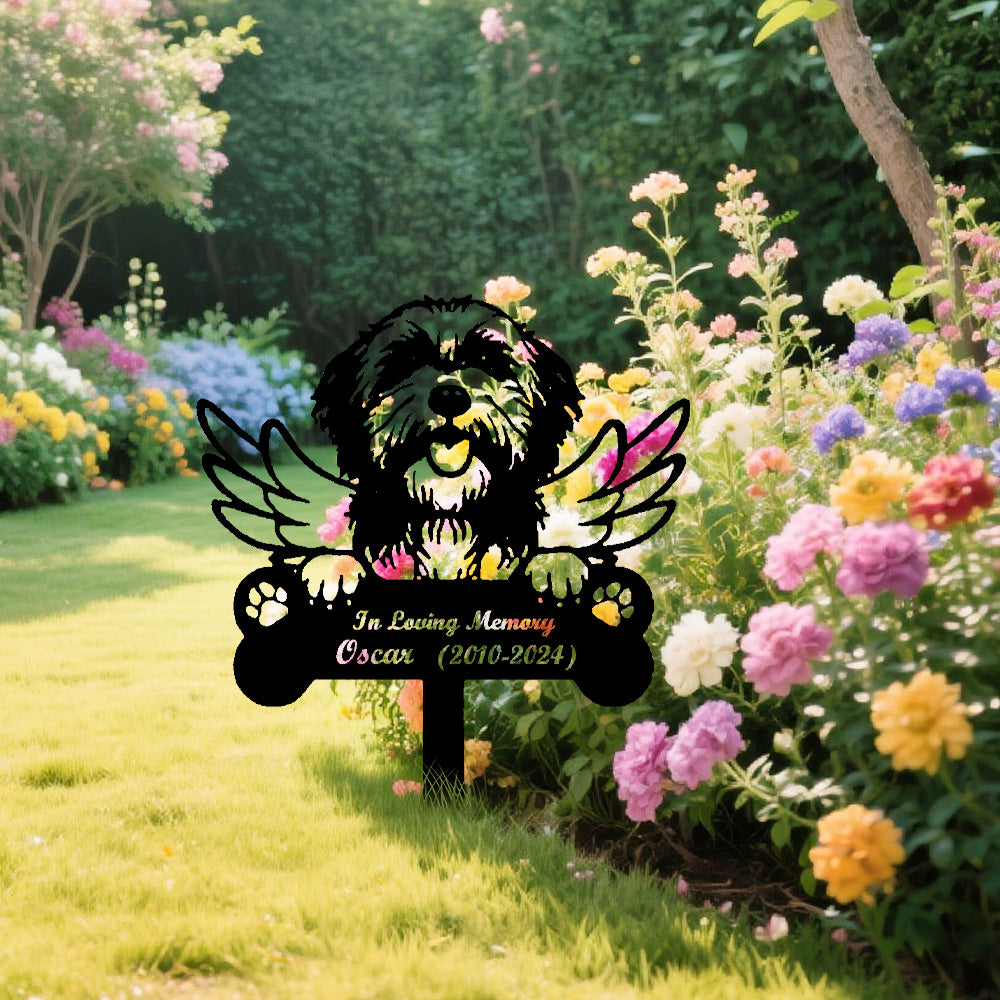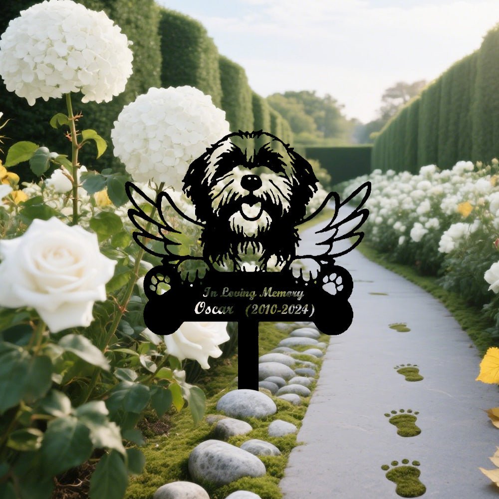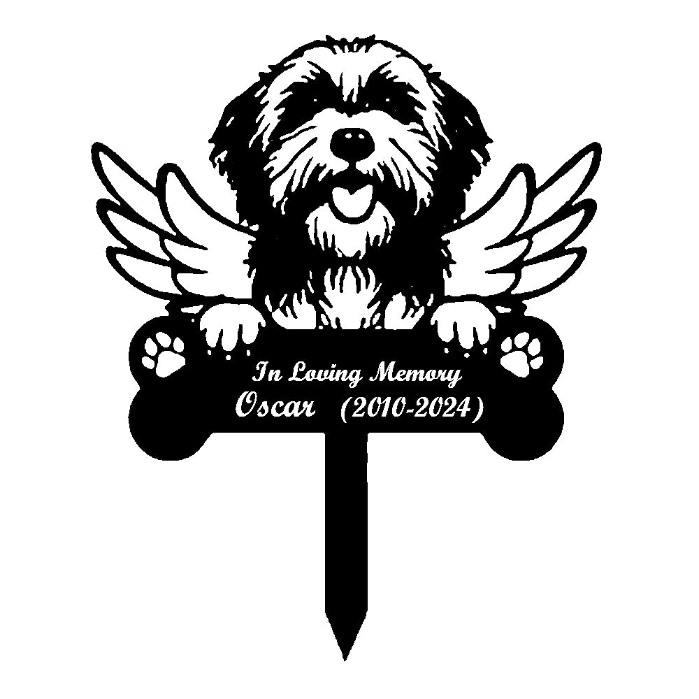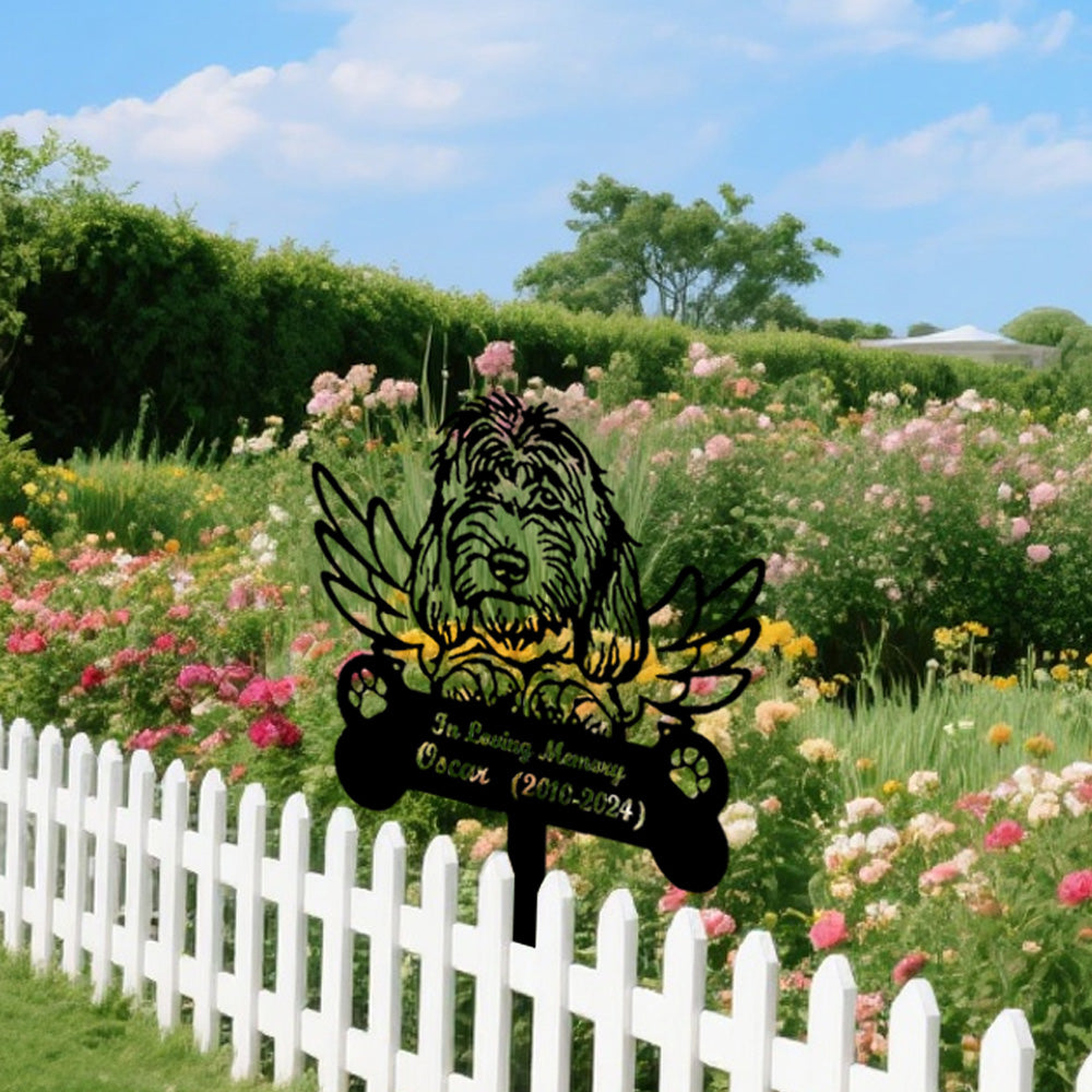 Bearded Collie Dog Custom Memorial Stake with Wings