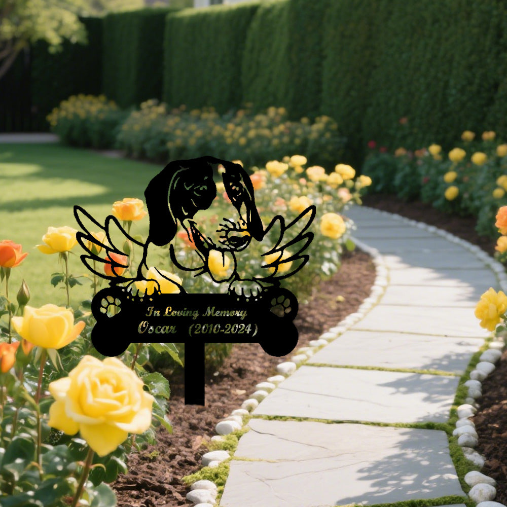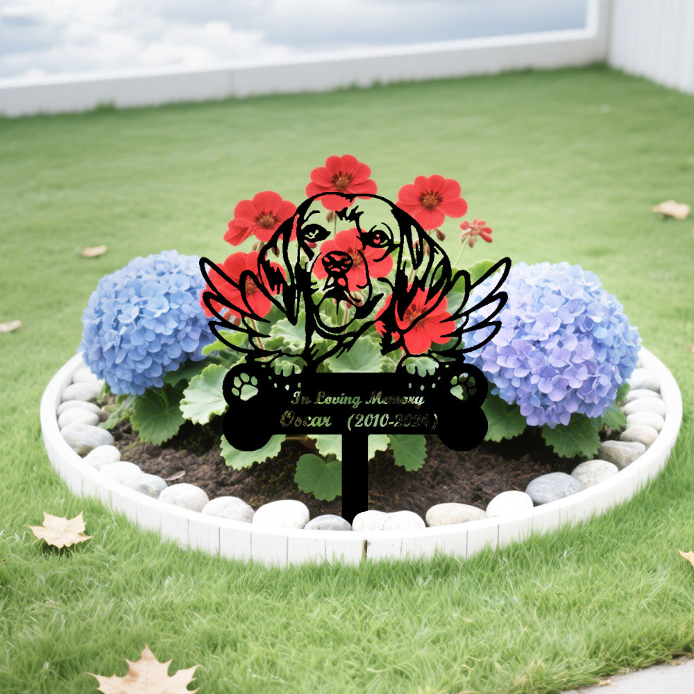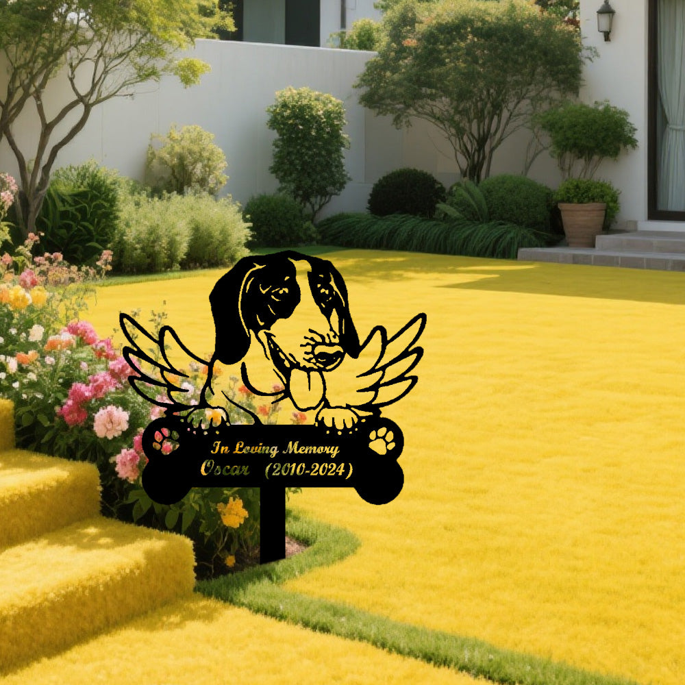 Beagle Dog Custom Memorial Stake with Wings