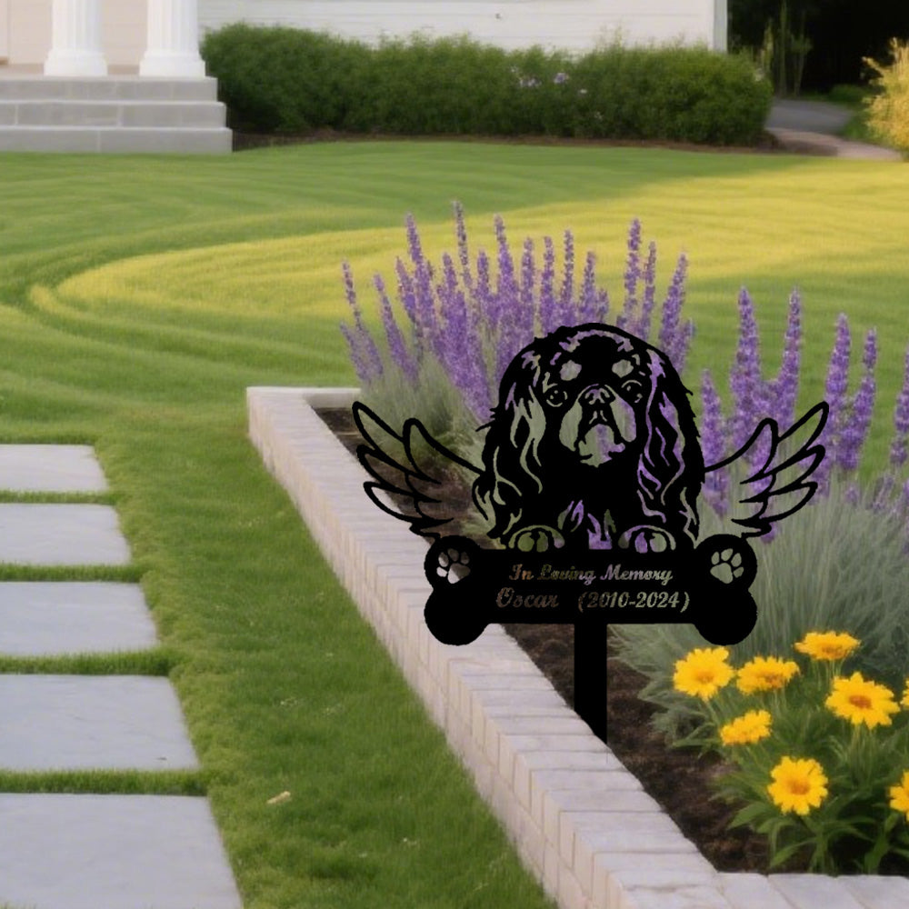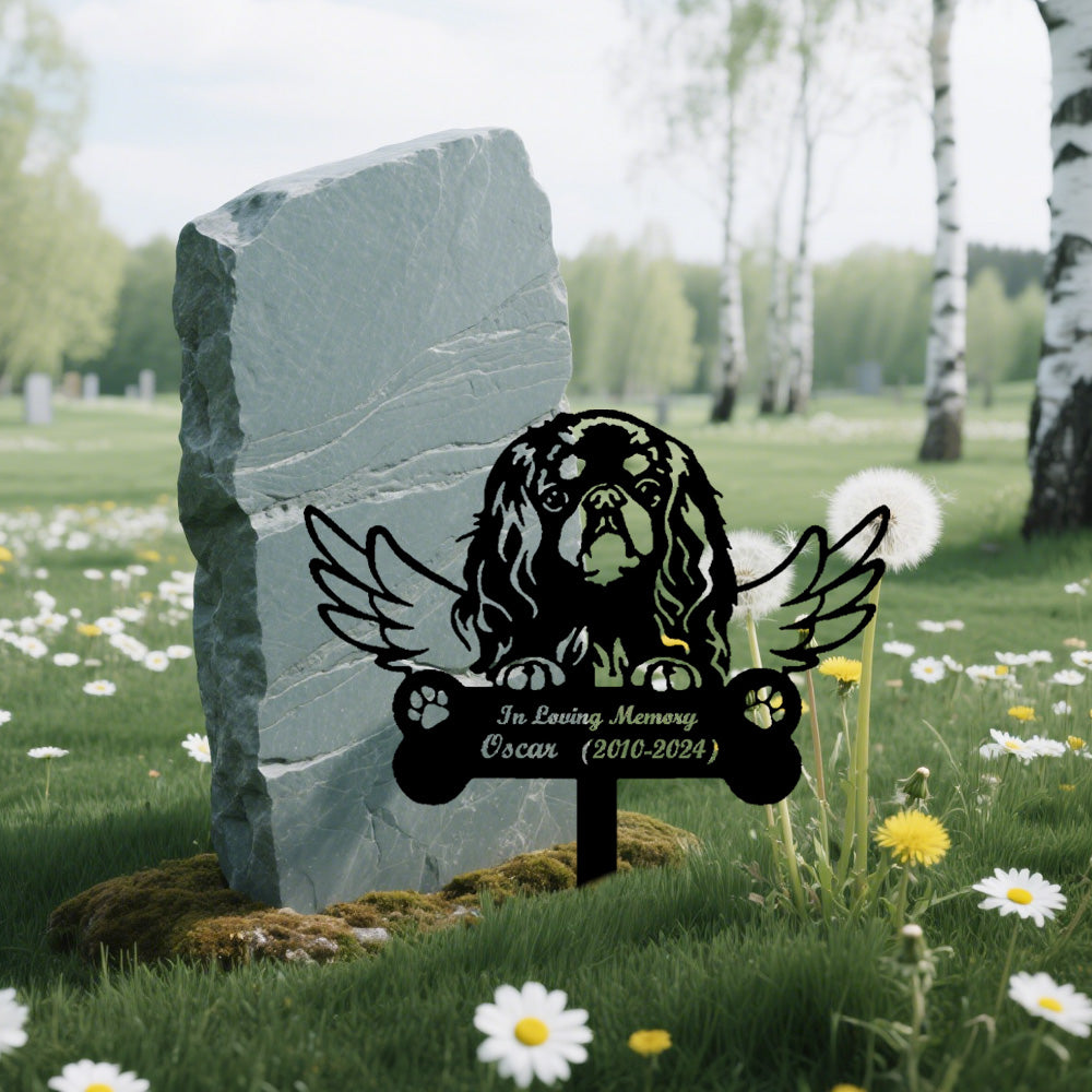 English Toy Spaniel Dog Custom Memorial Stake with Wings