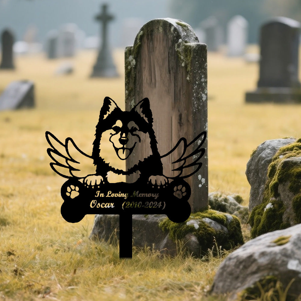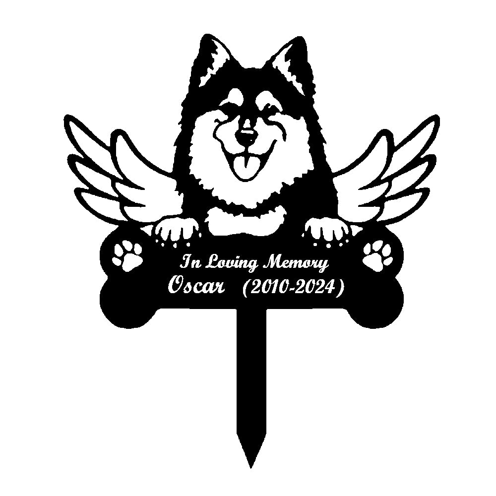 Finnish Spitz Dog Custom Memorial Stake with Wings