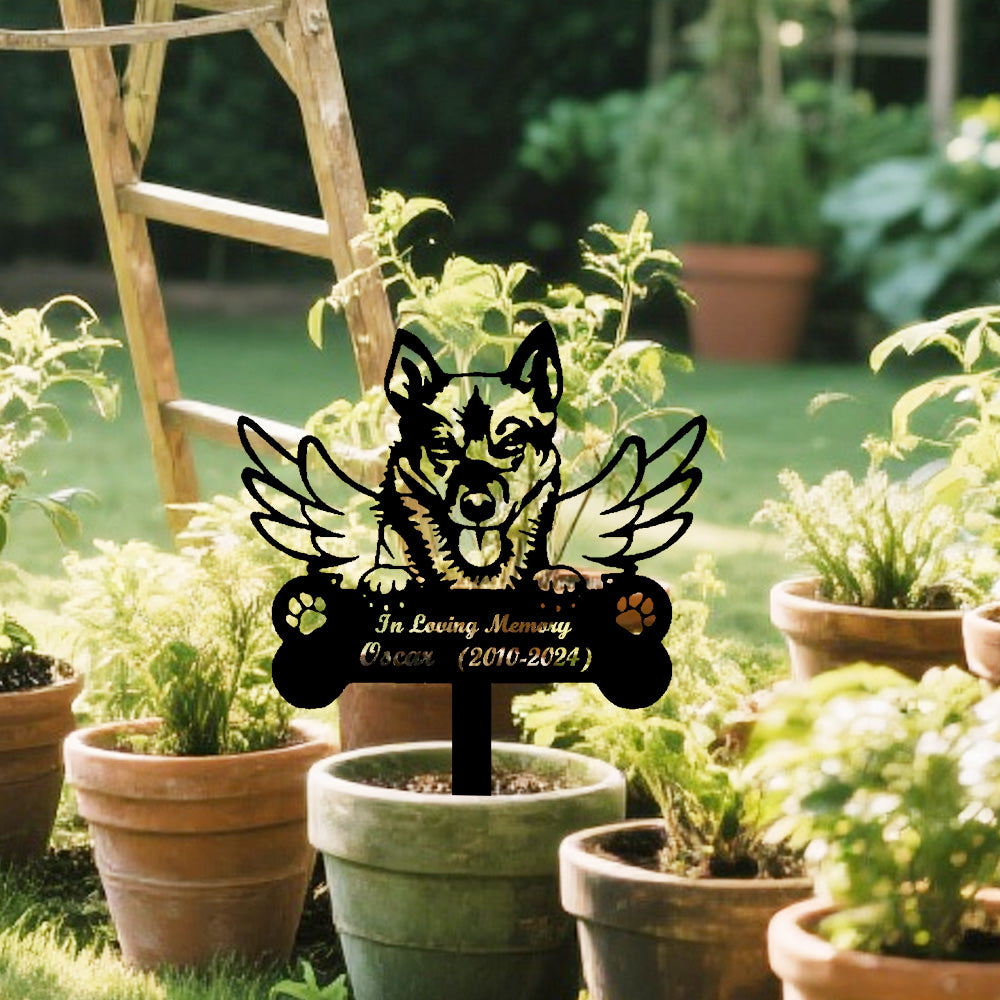 German Shepherd Dog Custom Memorial Stake with Wings