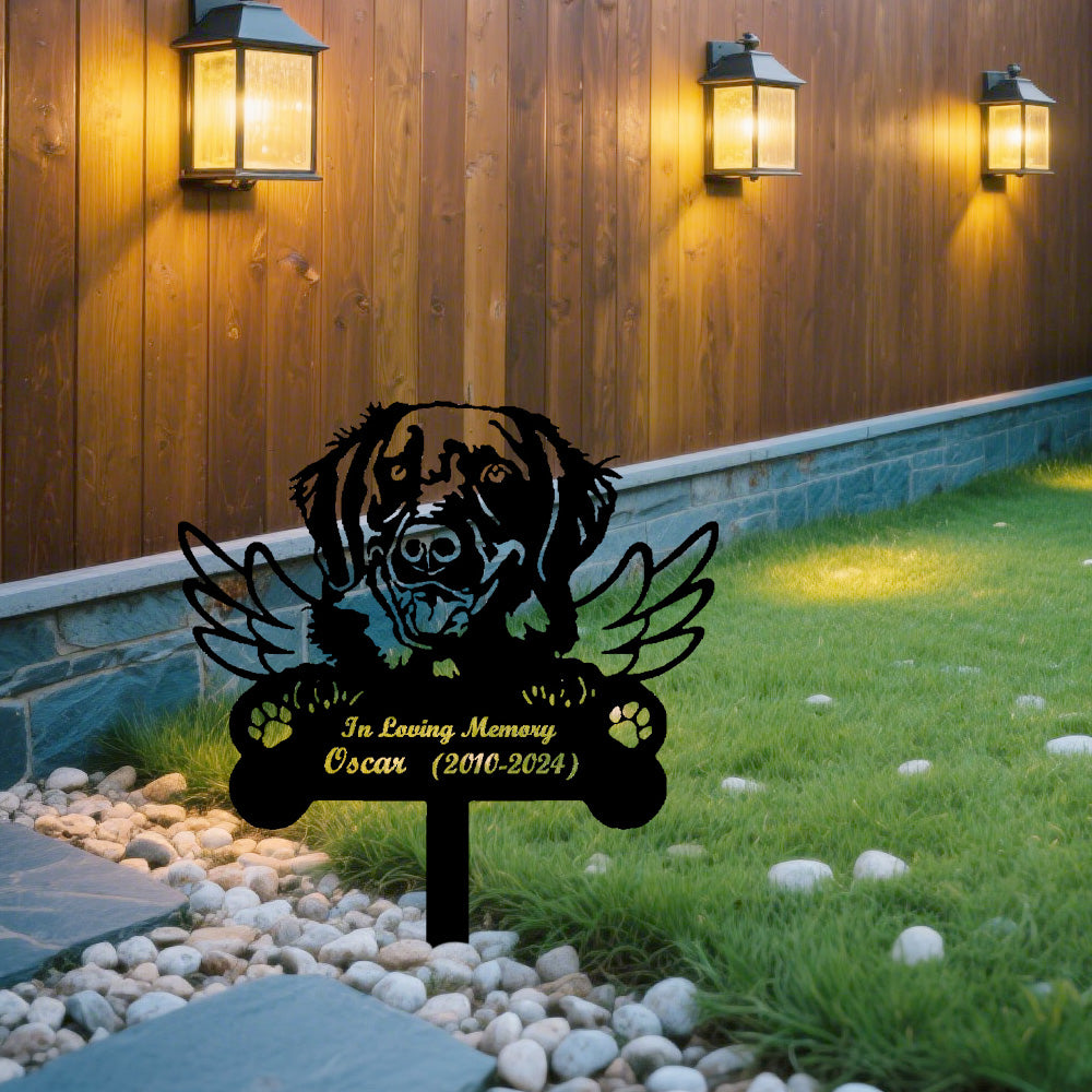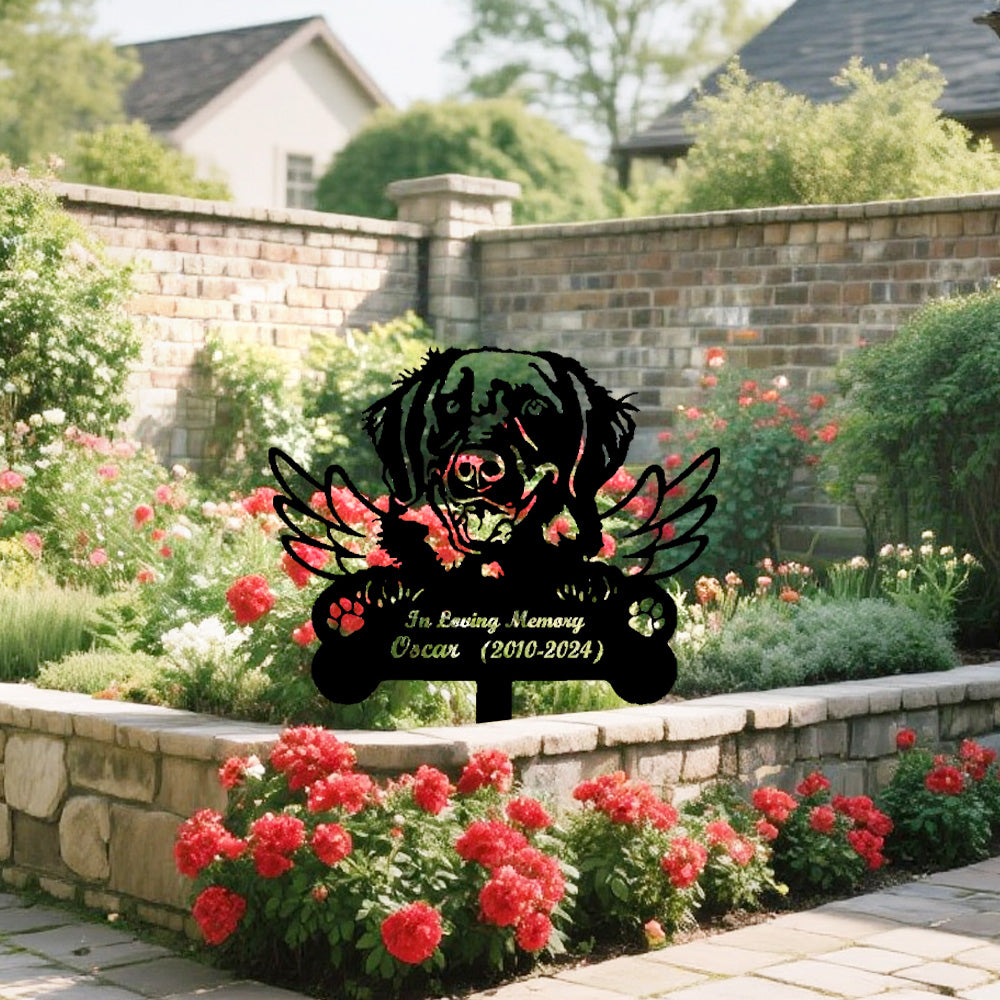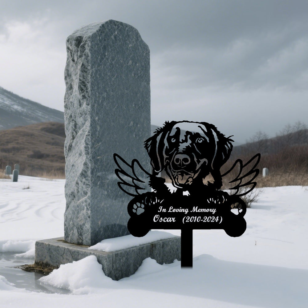 Flat Coated Retriever Dog Custom Memorial Stake with Wings