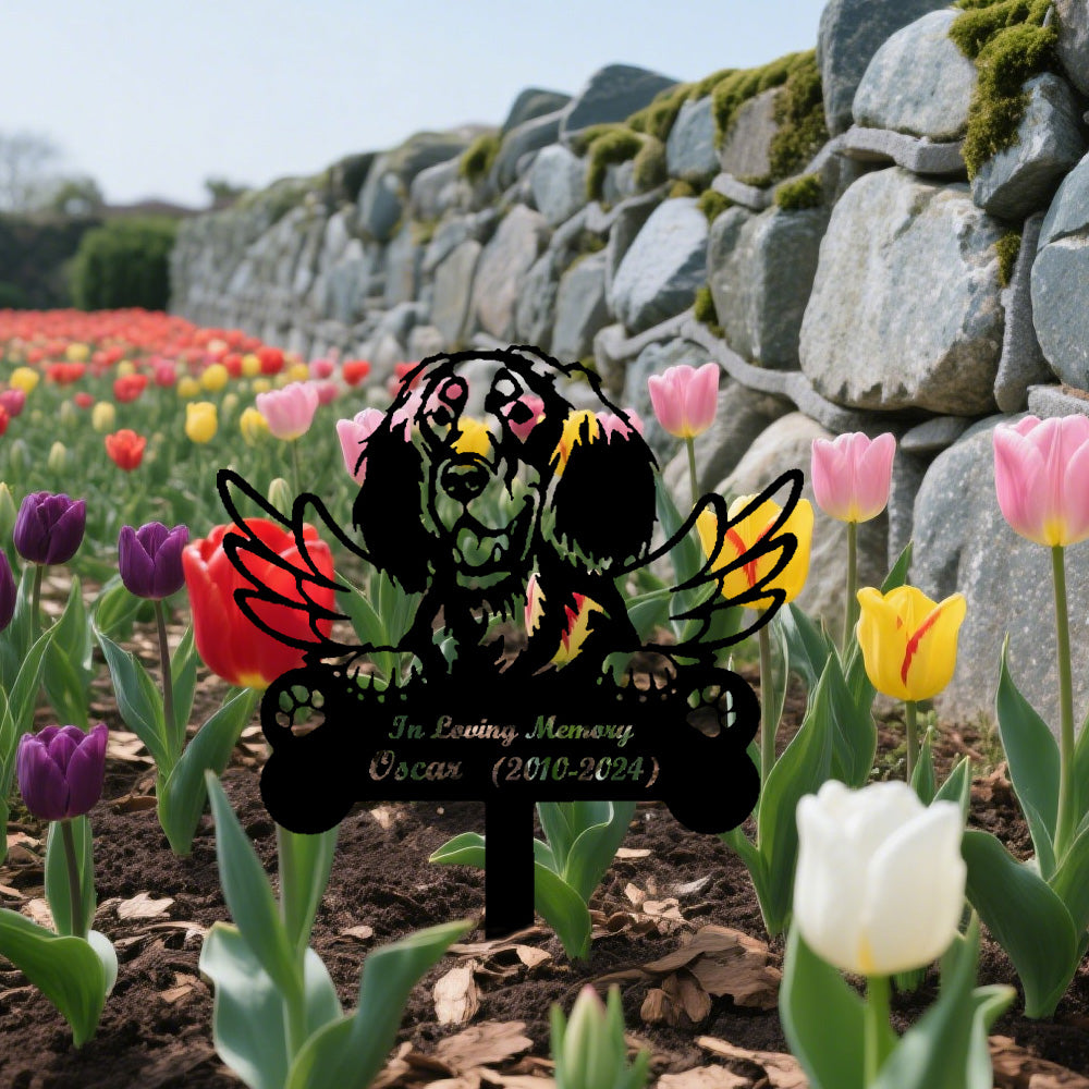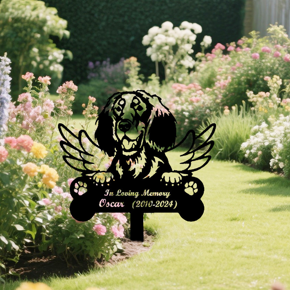 Filed Spaniel Dog Custom Memorial Stake with Wings